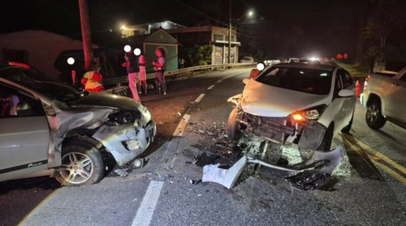 Acidente entre dois carros deixa duas pessoas levemente feridas