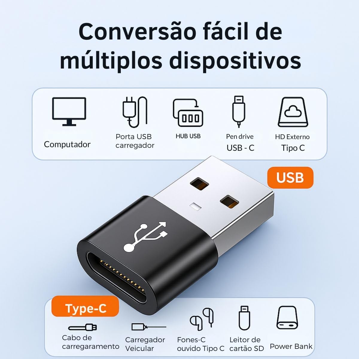 - Transforme seu cabo Tipo-C em USB tradicional instantaneamente