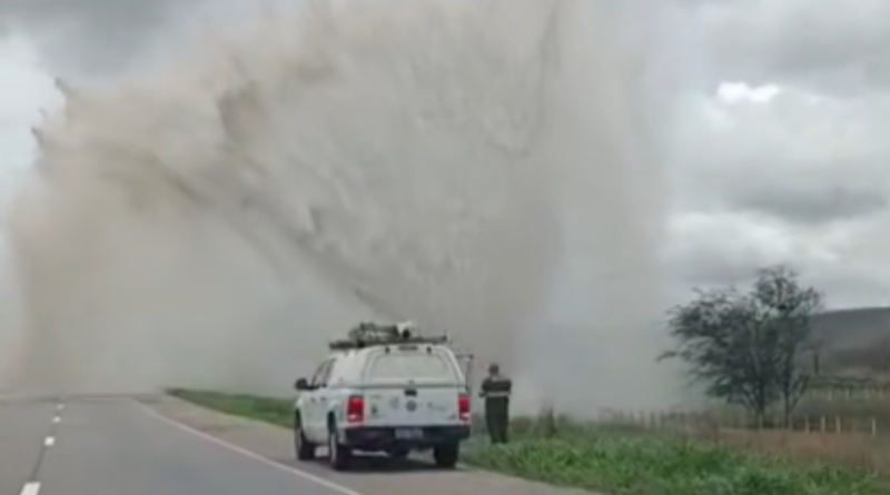 A Polícia Rodoviária Federal (PRF) foi acionada para atuar na segurança dos motoristas que trafegam pela área, enquanto equipes técnicas trabalham para conter o vazamento e iniciar os reparos na tubulação.