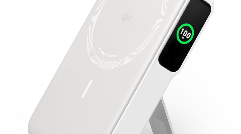 Anker MagGo Power Bank, Carregador Portátil com Certificação Qi2 de 15W, Compatível com MagSafe, 10.000mAh, Tela Inteligente e Suporte Dobrável, para iPhone 17/15/14/13/12, Inclui Cabo USB-C, Branco