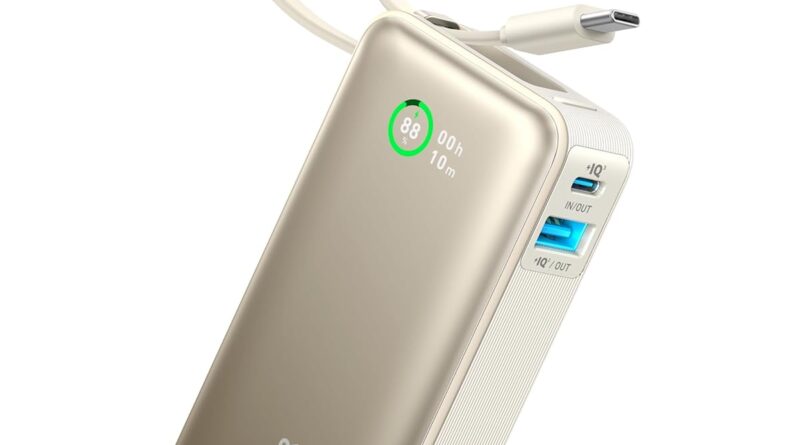 Anker Nano Power Bank, Carregador Portátil de 10.000 mAh com Cabo USB-C Integrado, Saída Máxima de 30W, para iPhone 17/iPhone 16/Série 15, MacBook, AirPods e Mais, Branco