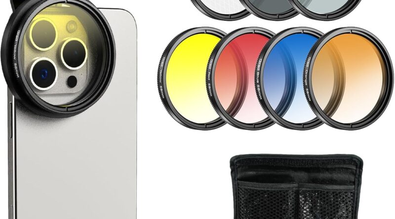 APEXEL Kit de filtro de lente de 58 mm com clipe para celular (7 peças: CPL/ND32/Star/filtros graduados de 4 cores) compatível com iPhone 16 15 14 Pro Max 13 12 11 e câmeras Canon Nikon Sony, com