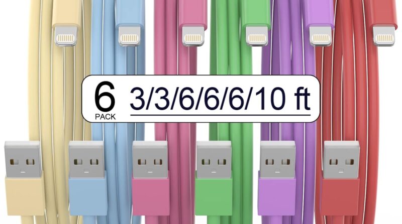 ![[Apple MFi Certified] iPhone Charger, 6Pack(3/3/6/6/6/10 FT) Lightning Cable Apple Charging Cable Fast Charging High Speed USB Cable Compatible iPhone 14/13/12/11 Pro Max/XS MAX/XR/XS/X/8-multicolor]( https://m.media-amazon.com/images/I/713u0uCrc3L._AC_SL1500_.jpg)