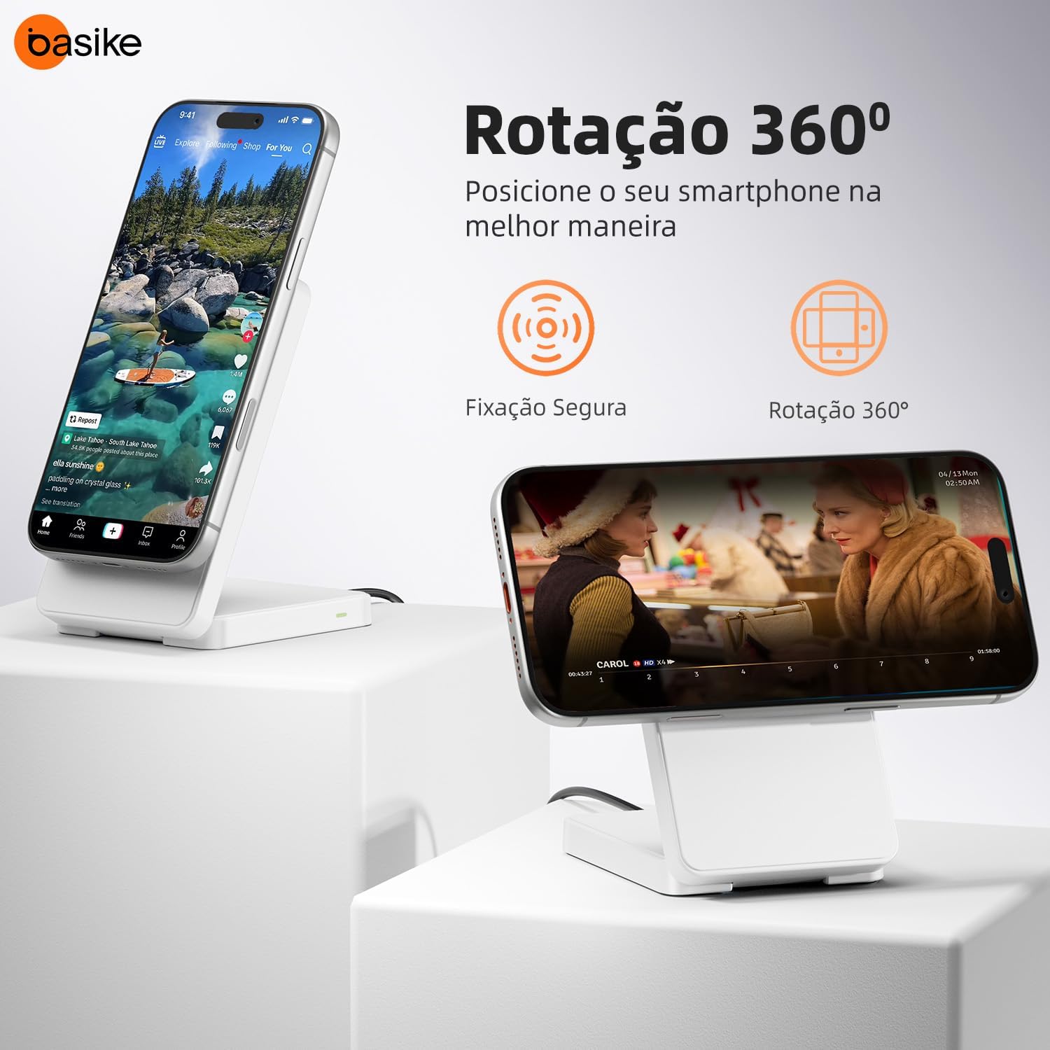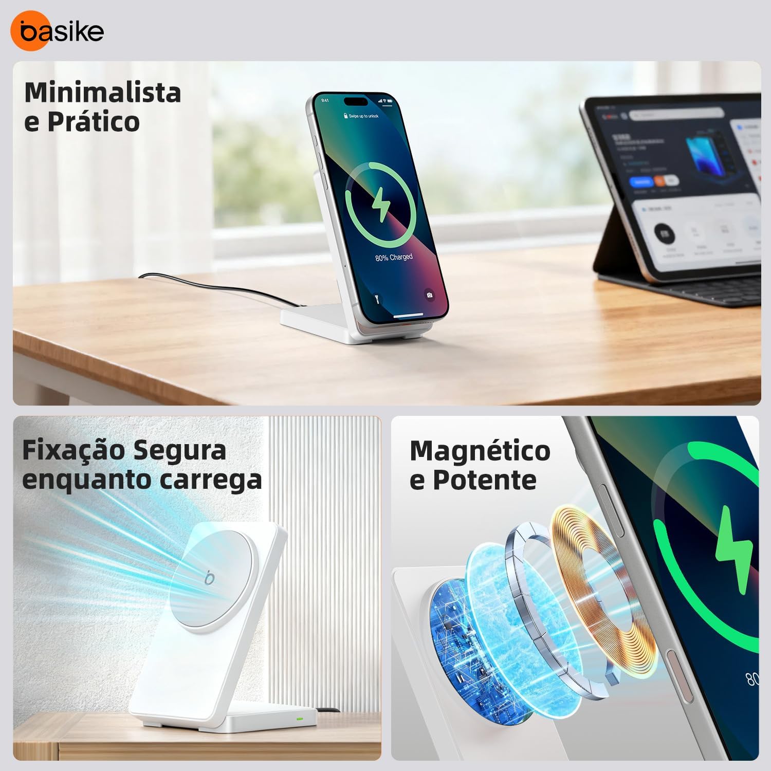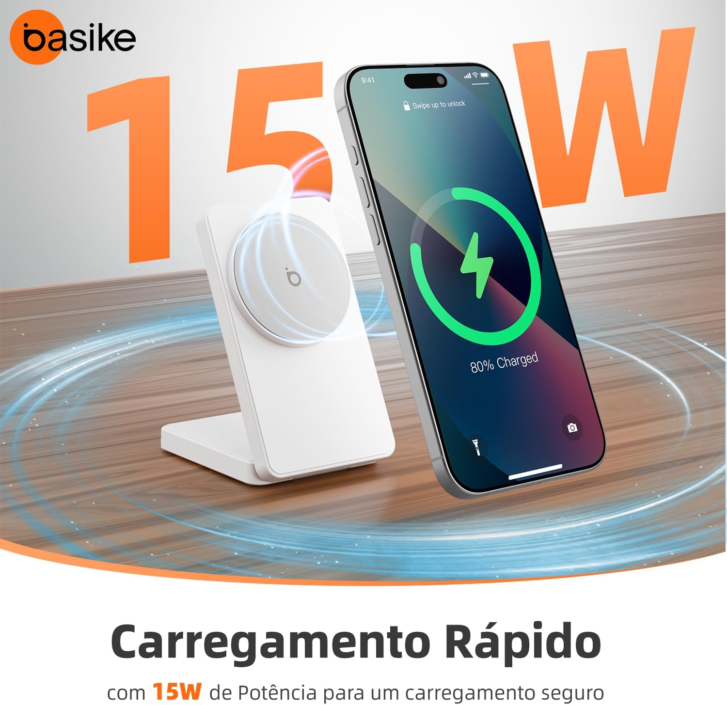 ⚡ 【Carregamento Rápido de 15W】Basike carregador sem fio compatível com carregamento sem fio rápido de até 15W para iPhones, permitindo carregar seu dispositivo de forma eficiente e segura.