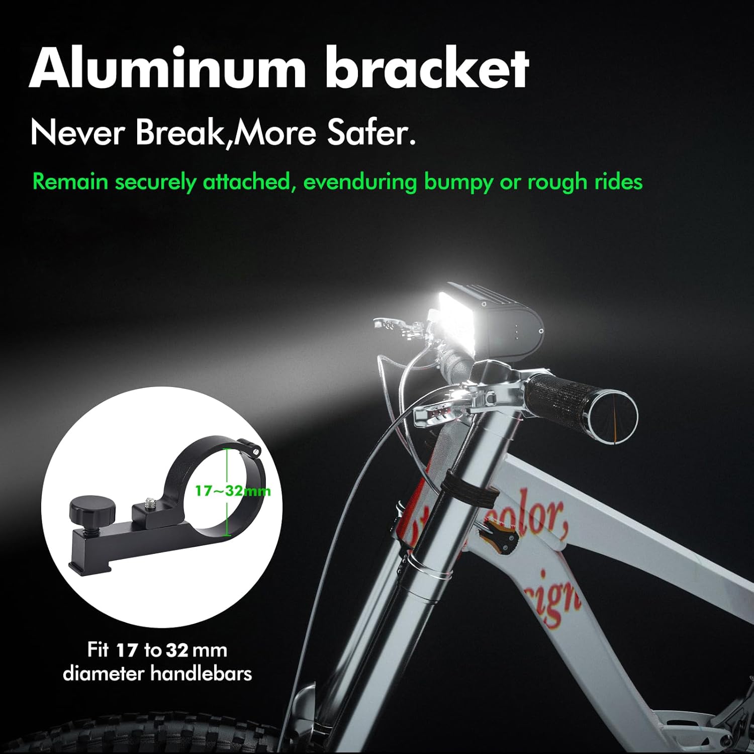 【Super Bright Bicycle Light with 9500 Lumen】The Latest Version of 2024, 5 light and 9500 Lumen bright. The bicycle front light allows you to see further & clearer when night riding at high speeds over 30km/h