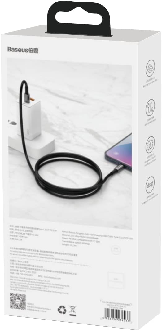 Cabo carregador para iPhone Tipo C Para Lightning 20W 1 metro Tungsten Fast Charging Baseus iPhone 14/13/12/11