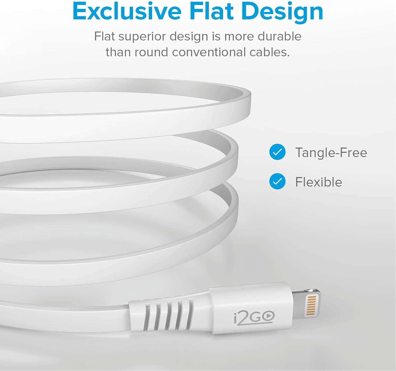 Cabo Iphone/Cabo Lightning I2GO Certificado MFi 1,2m 2,4A PVC Flexível Flat Branco – I2GO Basic