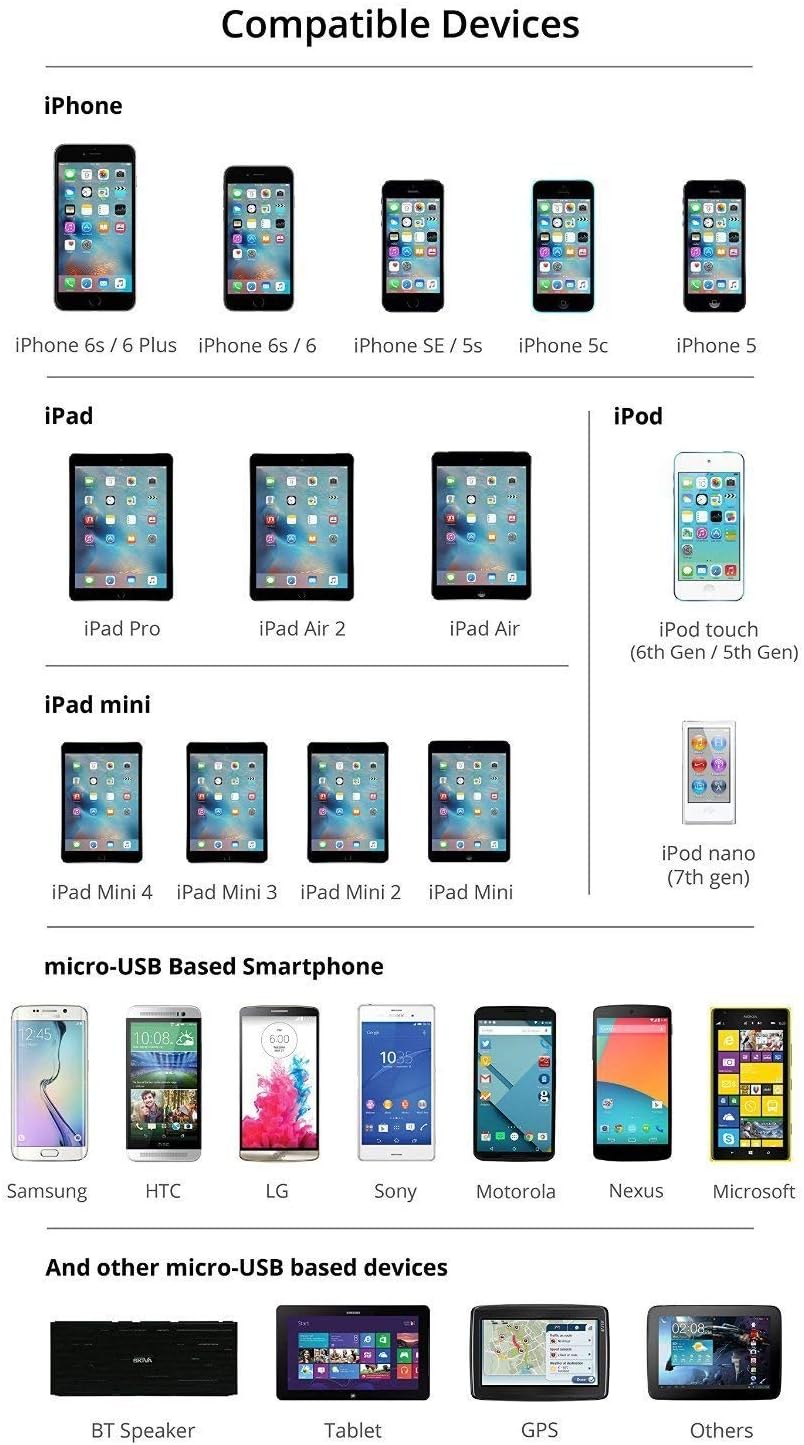 Compatibilidade: carregamento rápido e sincronização rápida para a maioria dos smartphones/tablets Apple/Android/Windows, incluindo iPhone X 8 7 6s 6 Plus SE, iPad Pro Air mini, iPad 6ª geração, iPod touch nano, areia mais.