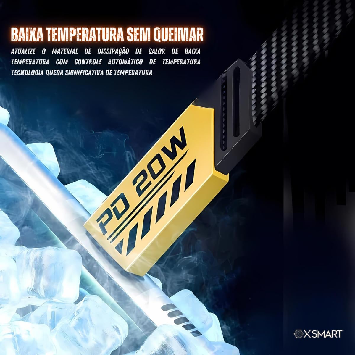 O Cabo iPhone/Lightning + USB-C xsmart para iPhone e iPad utiliza chip conector C94 original homologado e certificado pela Apple. Carrega e sincroniza mais rápido que os cabos convencionais e é compatível com com qualquer aparelho Apple que possua entrada Lightning e USB-C
