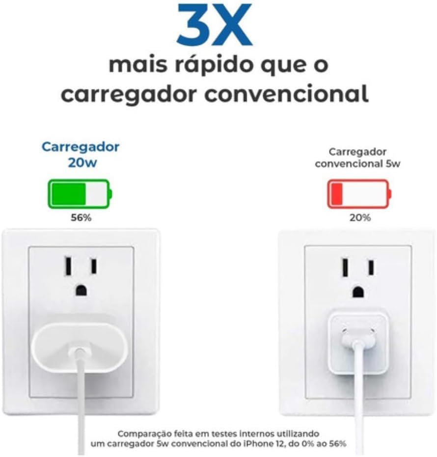 Cabo Usb-C-Lightning + Fonte Carregado 20W Turbo Compatível SE X Xr 11 12 13 14