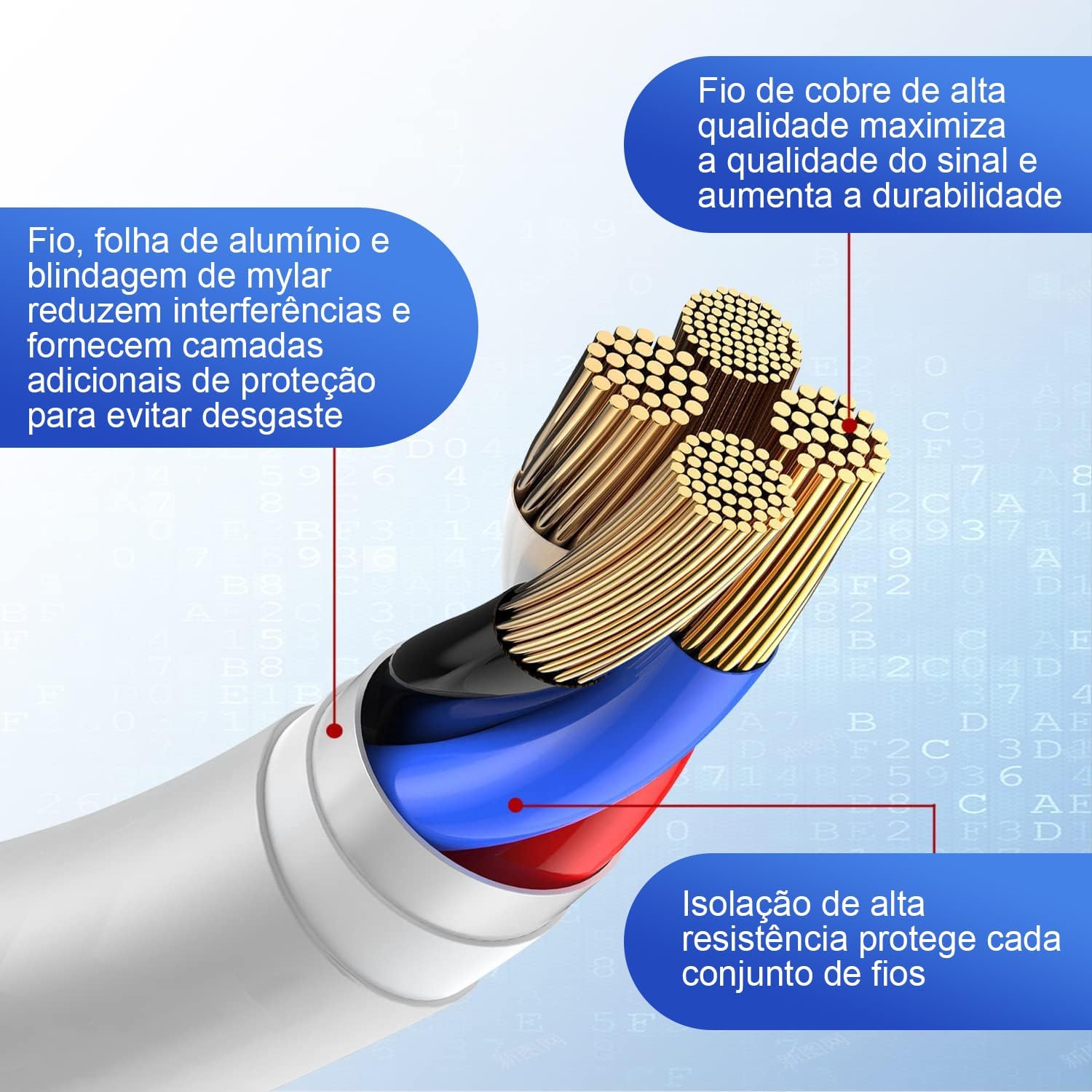 Construção Durável de Alta Qualidade: Fabricado com plástico TPE de excelente qualidade, proporciona resistência superior e flexibilidade, aumentando a vida útil do seu cabo e assegurando uma durabilidade de longa duração.