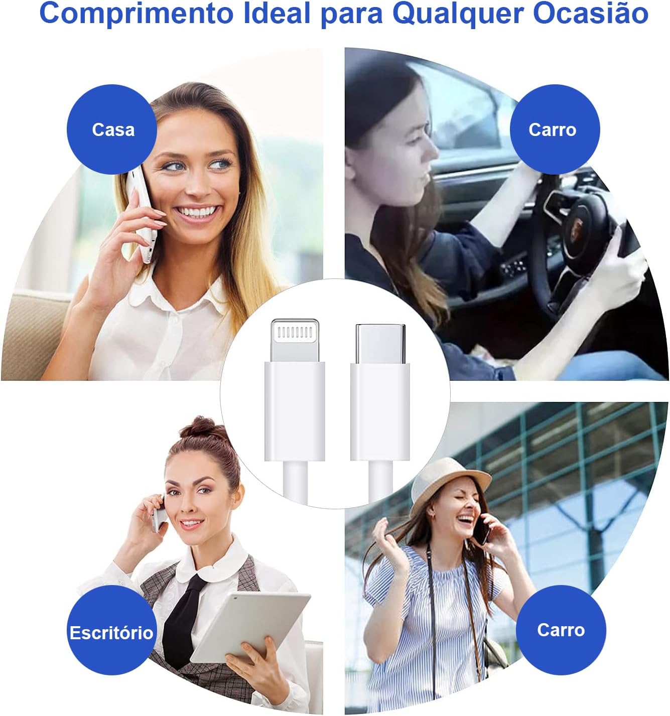 Compatibilidade Ampla – Funciona perfeitamente com modelos iPhone 14, 13, 12, 11, XR, XS, X, 8, 7, iPads e MacBooks e mais, garantindo carregamento rápido e sincronização de dados.