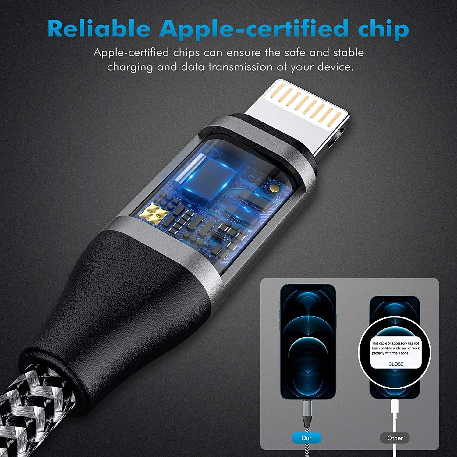 Carregamento super reserva: tempo de carregamento muito rápido, conector superior para iPhone garante transferência de dados superior com carregamento rápido e estável. Nossa tecnologia equipa dezenas de milhares de testes para garantir 100% de segurança para o seu dispositivo.