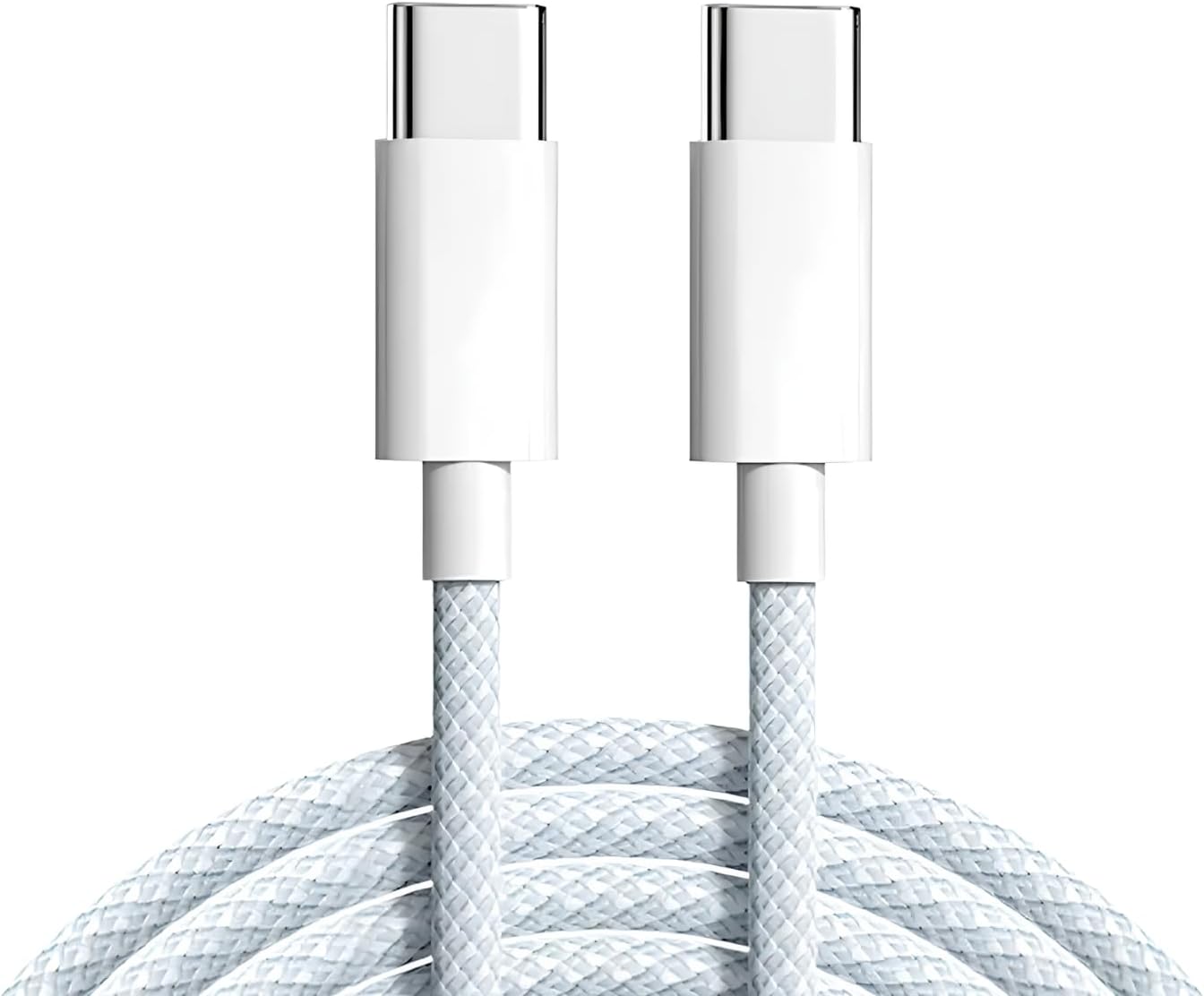 Cabo USB-C para Tipo-C Turbo – 1M, Compatível com Iphone 15/15 Pro/15 Pro Max/16/16 Pro/16 Pro Max e Android, Carregamento Rápido e Transferência de Dados, Cabo Resistente – Branco