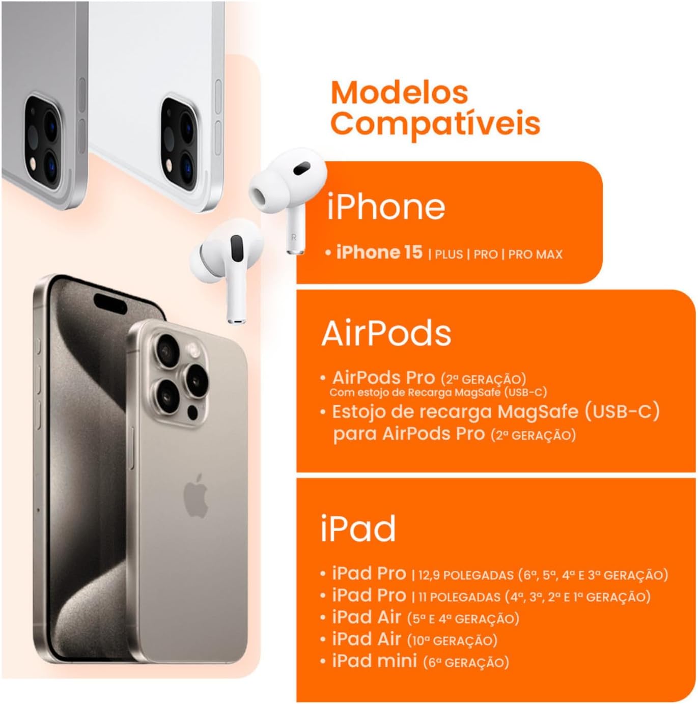 - *iPhones anteriores ao iPhone 15 não são compatíveis*