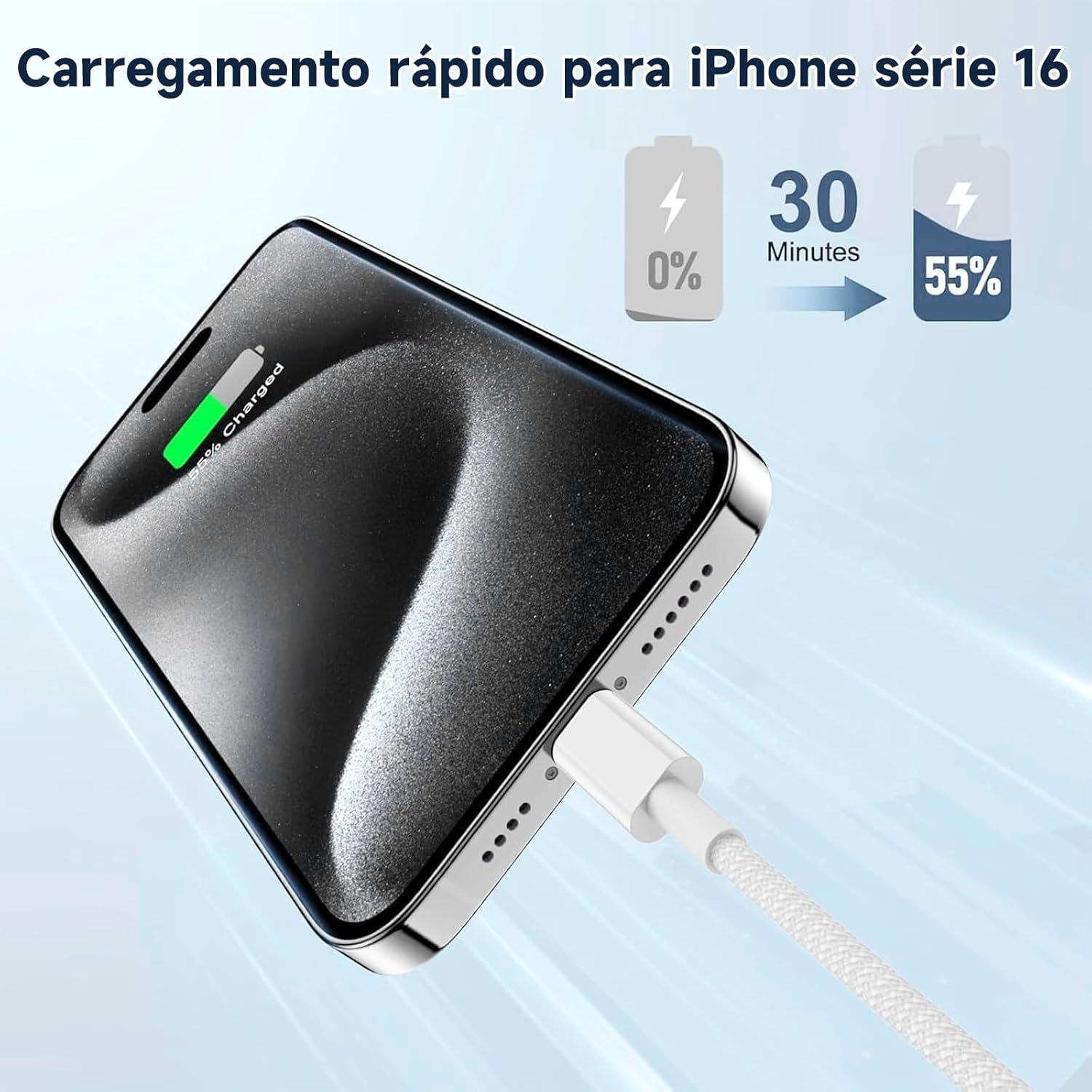 🌟《Cabo Carregador Tipo C Turbo para iPhone》 Carregue seu iPhone 16, iPhone 15 Pro Max, MacBook e Galaxy S24+ com velocidade ultrarrápida! Nosso cabo carregador tipo C usa tecnologia PD para levar seu dispositivo de 0% a 50% em 30 minutos. Sem mensagens de alerta, perfeito para quem precisa de praticidade no dia a dia.