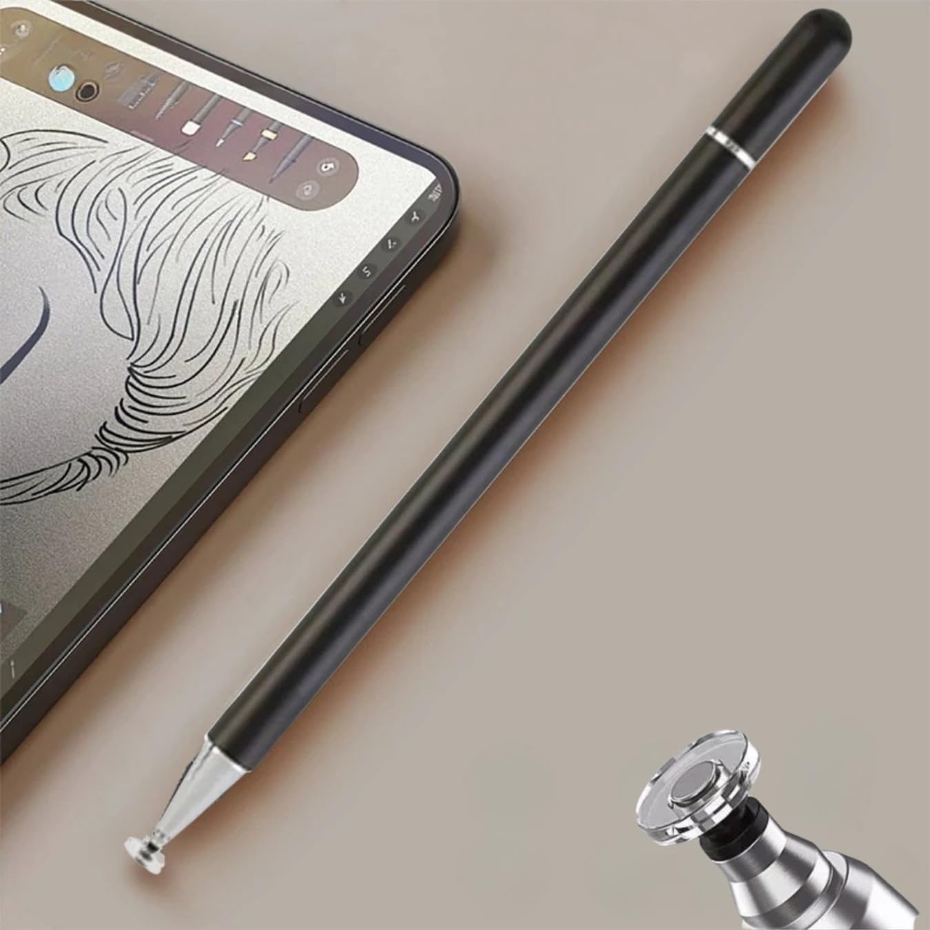 Apresentamos a Caneta Stylus Capacitiva Universal, um acessório versátil e indispensável para seus dispositivos touch screen. Com design elegante em metal preto, esta caneta oferece precisão excepcional para desenho, anotações e navegação em tablets, smartphones e notebooks. O diferencial está em sua ponta substituível, que pode ser facilmente trocada com um simples movimento da unha, garantindo maior durabilidade ao produto. Sua estrutura robusta inclui uma capa protetora e sistema de tampa pequena para máxima proteção. Compatível com uma ampla gama de dispositivos, incluindo produtos Apple, Samsung e Xiaomi, esta caneta stylus proporciona uma experiência suave e natural ao escrever ou desenhar. Ideal para artistas digitais, estudantes e profissionais que buscam maior precisão em suas atividades touch screen. O corpo metálico oferece equilíbrio perfeito e conforto durante o uso prolongado, permitindo movimentos precisos e controle superior em suas criações digitais.