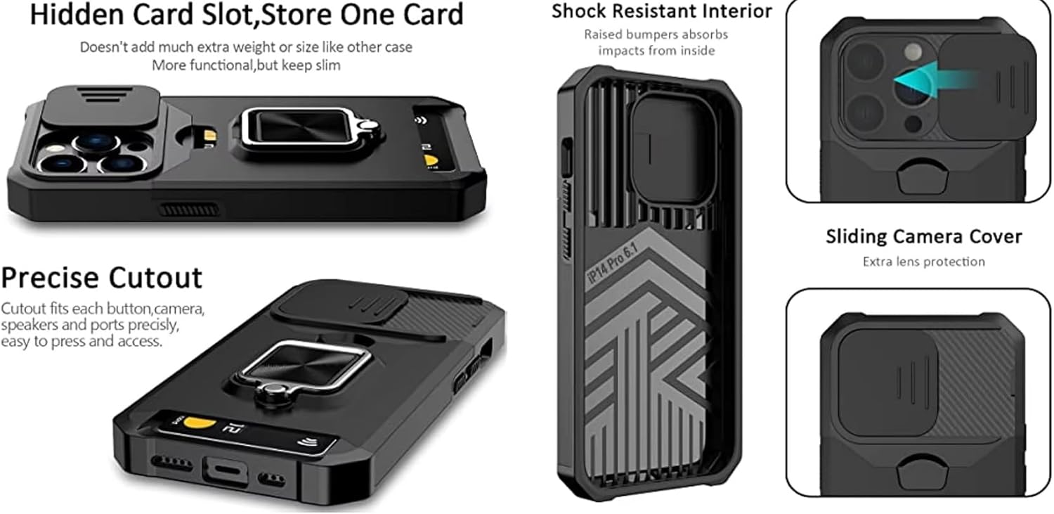 Capa Capa Armadura Kickstand 360 C/Proteção Camera e Encaixe P/Cartao Para Iphone 14 Pro Max