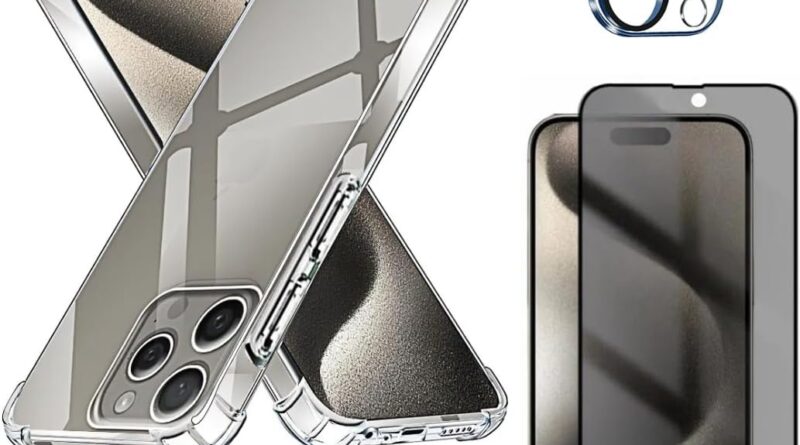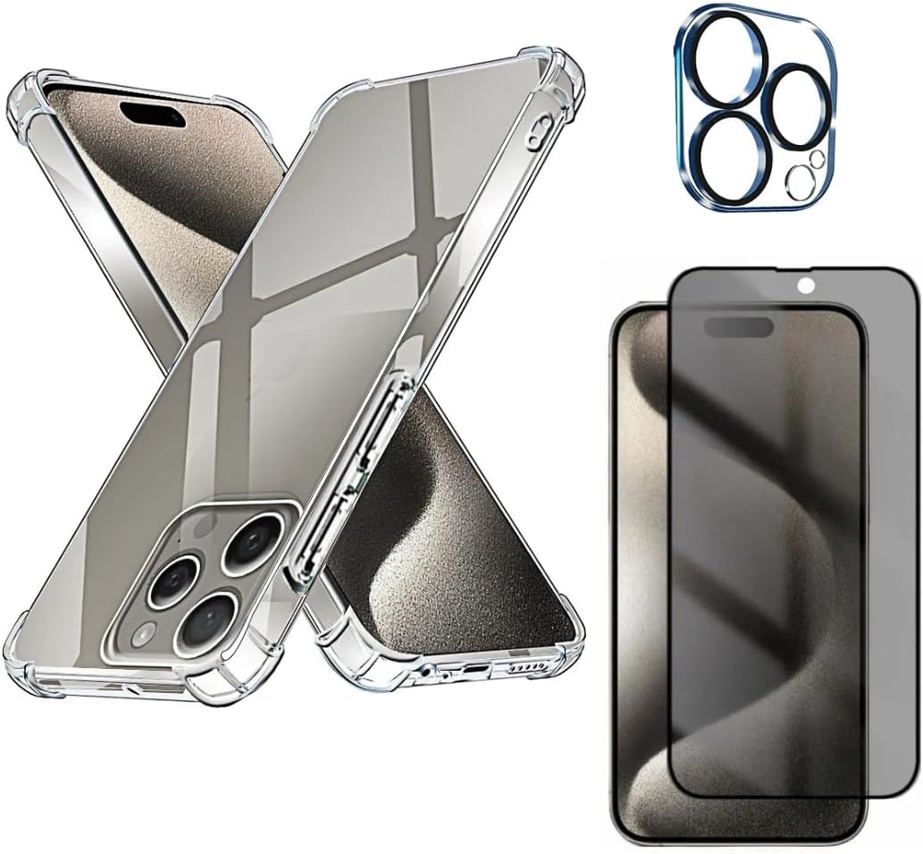 Capa Capinha Anti Impacto + Película Premium Privacidade + Película de Câmera Compatível Com iPhone 15, 15 Plus, 15 Pro, 15 Pro Max – (Hard Glass Store) (iPhone 15 (6.1))