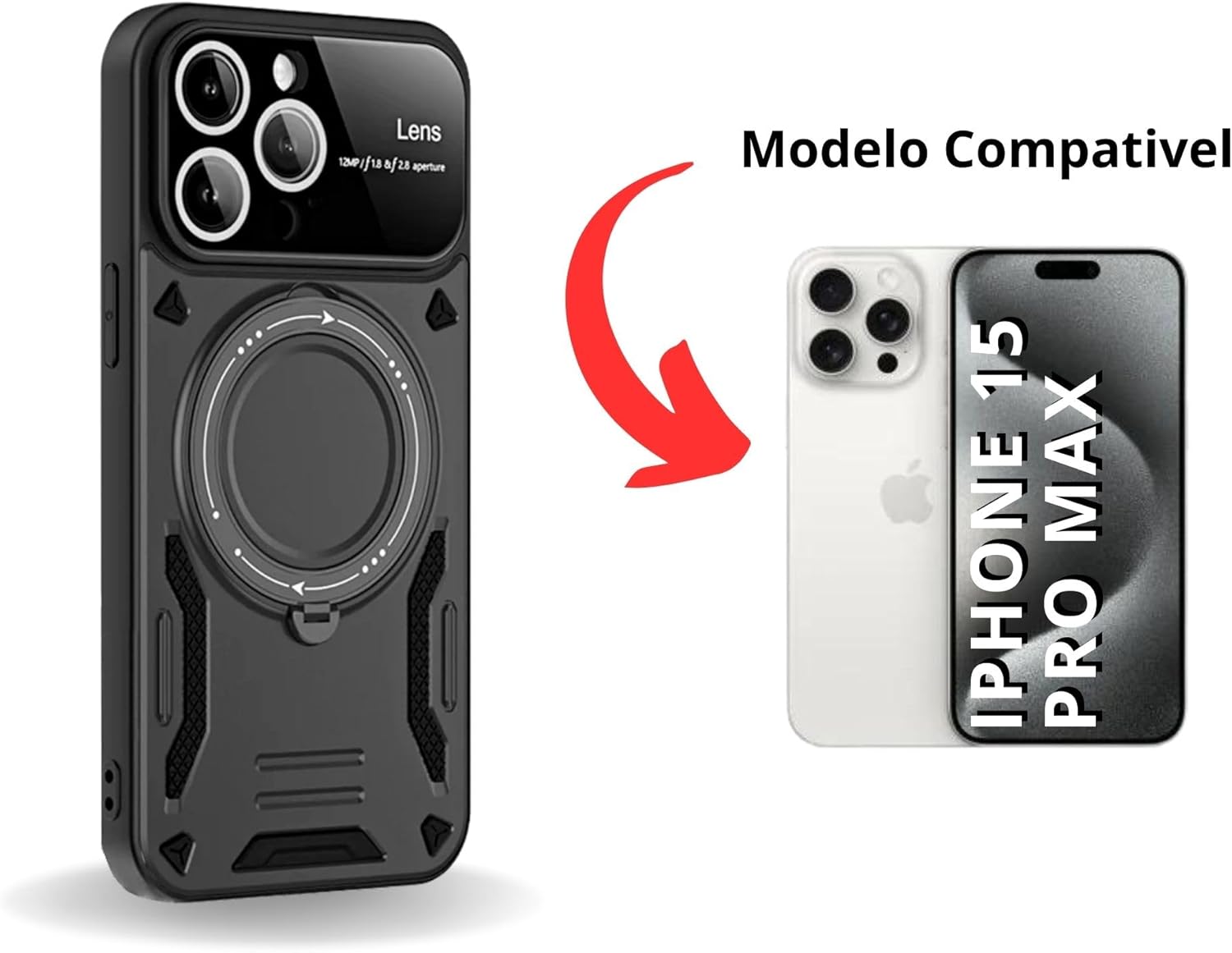 Capa Capinha Case Ring Anel Giratório Com Proteção de Câmeras, Resistência Premium Militar Para iPhone 15 Pro Max (Tela 6.7)