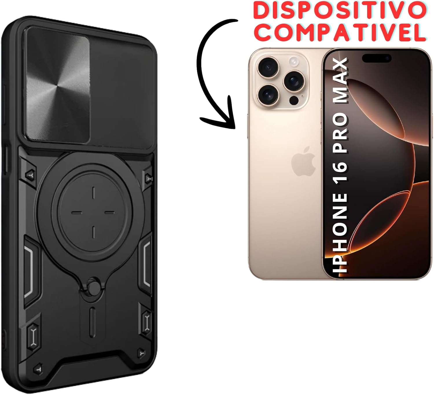 Capa Capinha Case Ring Anel Giratório Com Proteção de Câmeras, Resistência Premium Militar Para iPhone 16 Pro Max
