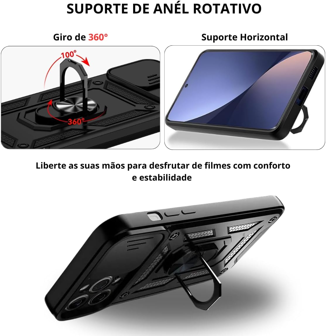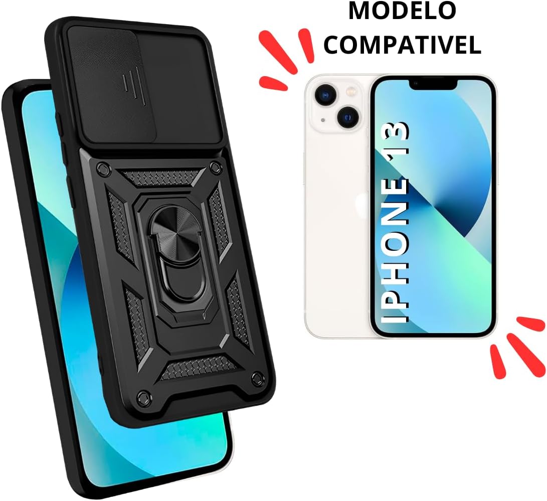 Capa Capinha Case Ring Anel Giratorio Com Proteção de Câmeras, Resistencia Premium Militar Para Iphone 13