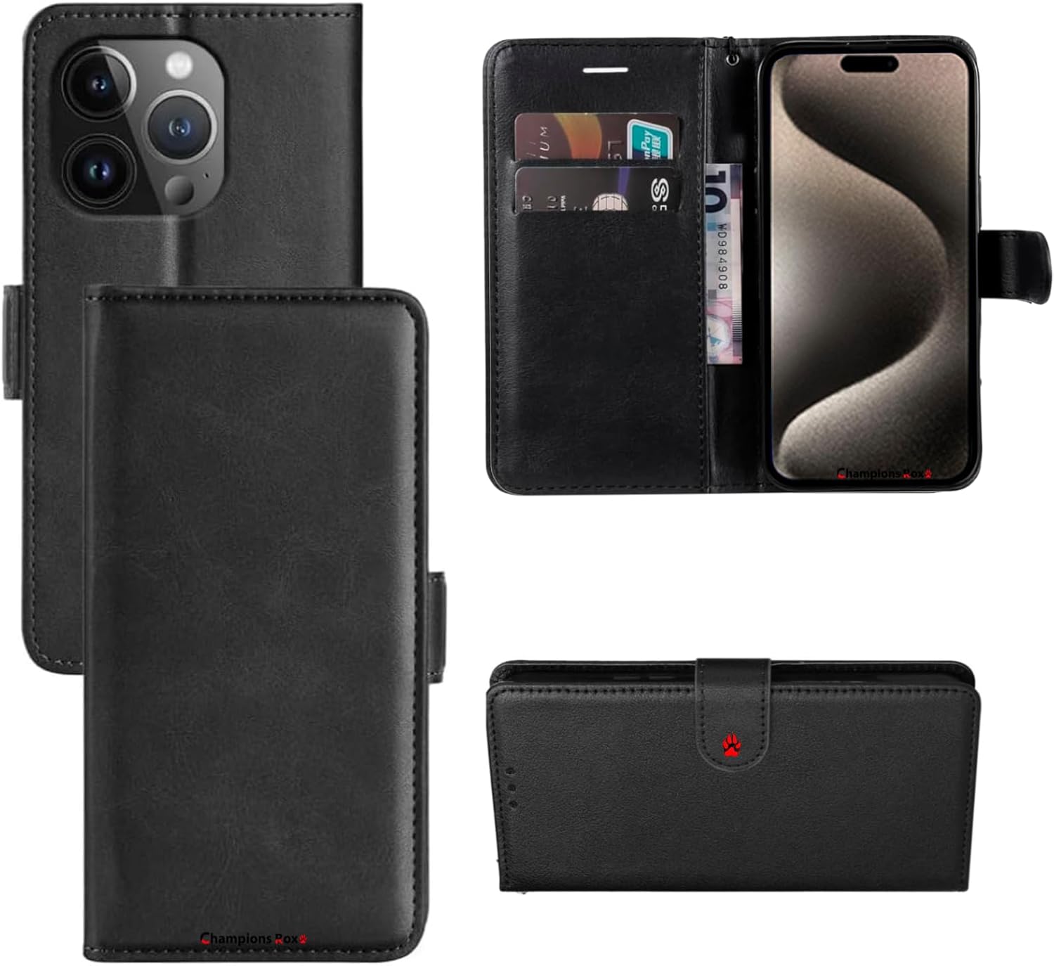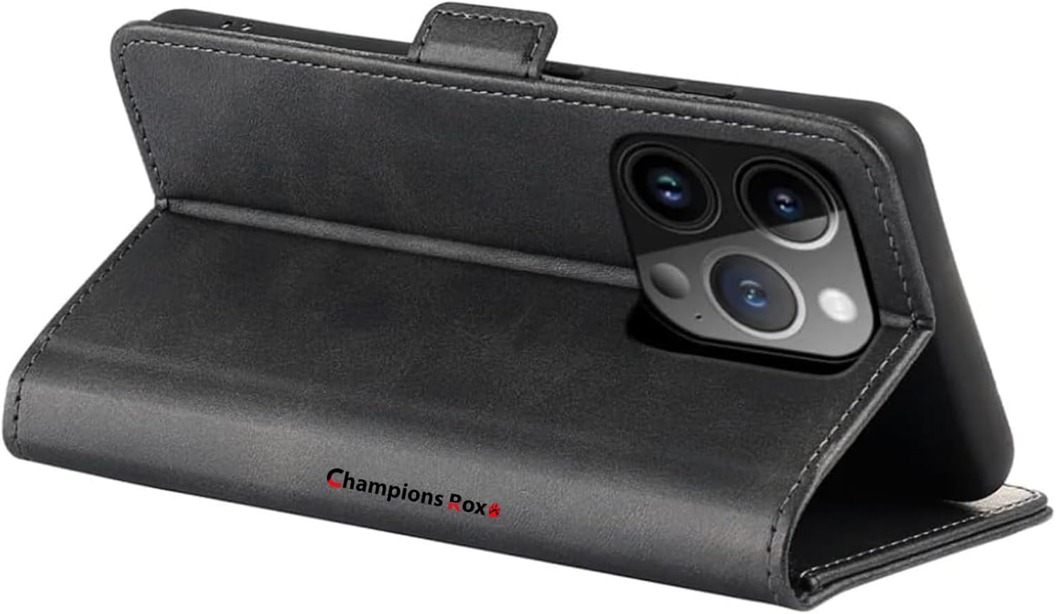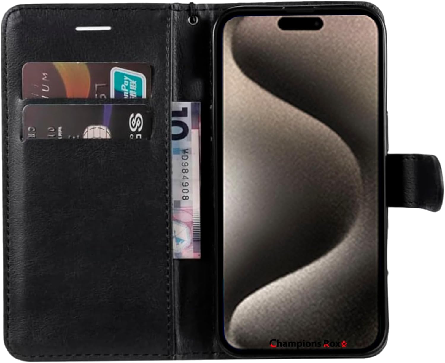 Capa Capinha Carteira Preta Com Porta Cartão Compatível Com iPhone 15, 15 Plus, 15 Pro, 15 Pro Max – (Champions Rox) (iPhone 15 Pro Max (Tela 6.7″))