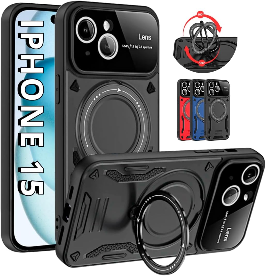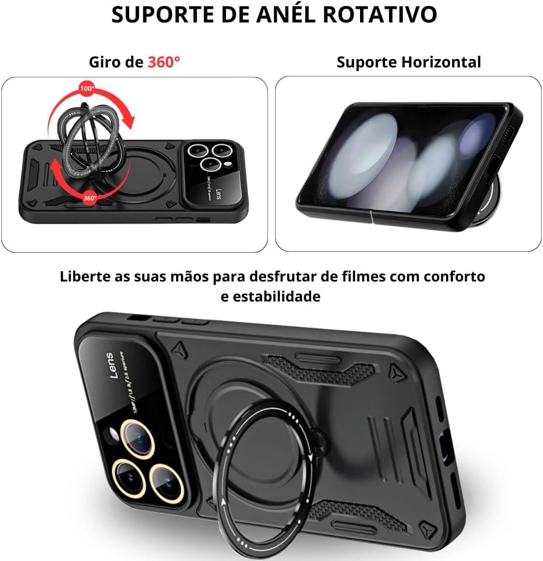 Capa Armor Magnética com Carregamento por Indução Wireless e Anel de Suporte para iPhone 15