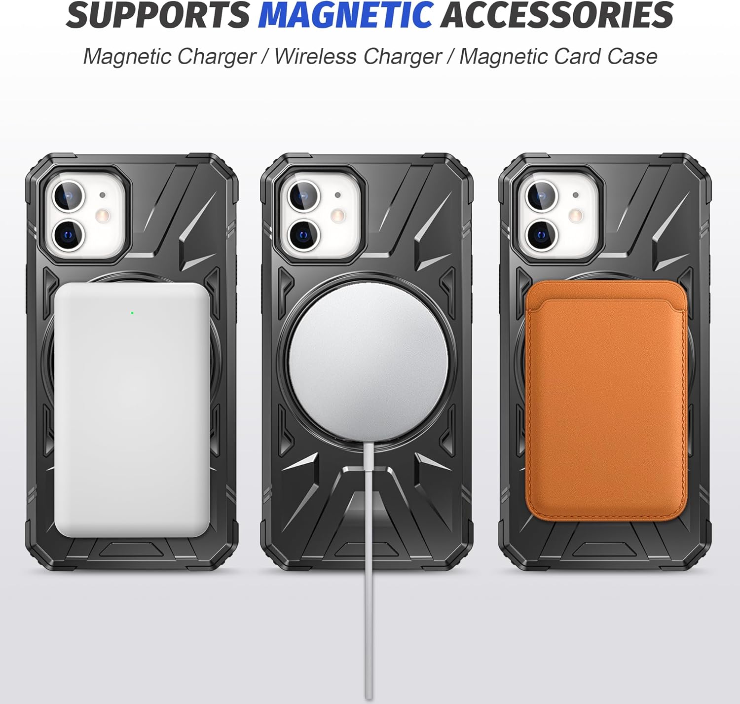 Capa Capinha Case Compativel Com iPhone 12 e 2 peças De Vidro Temperado À Prova De Suor Esportivo Suporte Magnético Para Carro Resistente A Quedas à Prova De Choque à Prova De Poeira