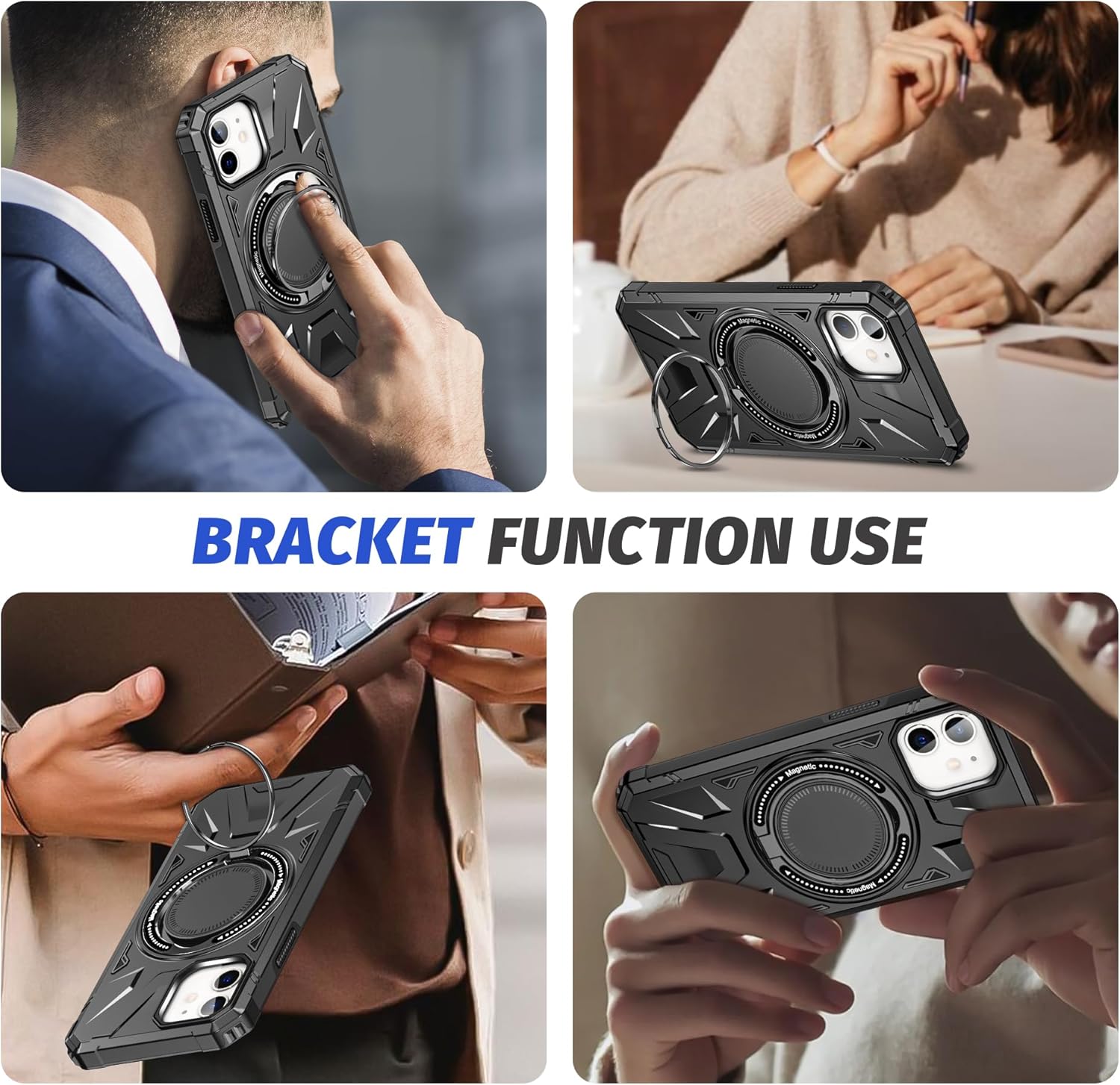 SUPORTE MAGNÉTICO VERSÁTIL:Projetado com um suporte magnético integrado ajustável (rotação de 135° ou 360°), permite posicionamento estável para assistir vídeos ou usar como suporte veicular. mantendo a funcionalidade de carregamento sem fio sem interferências.