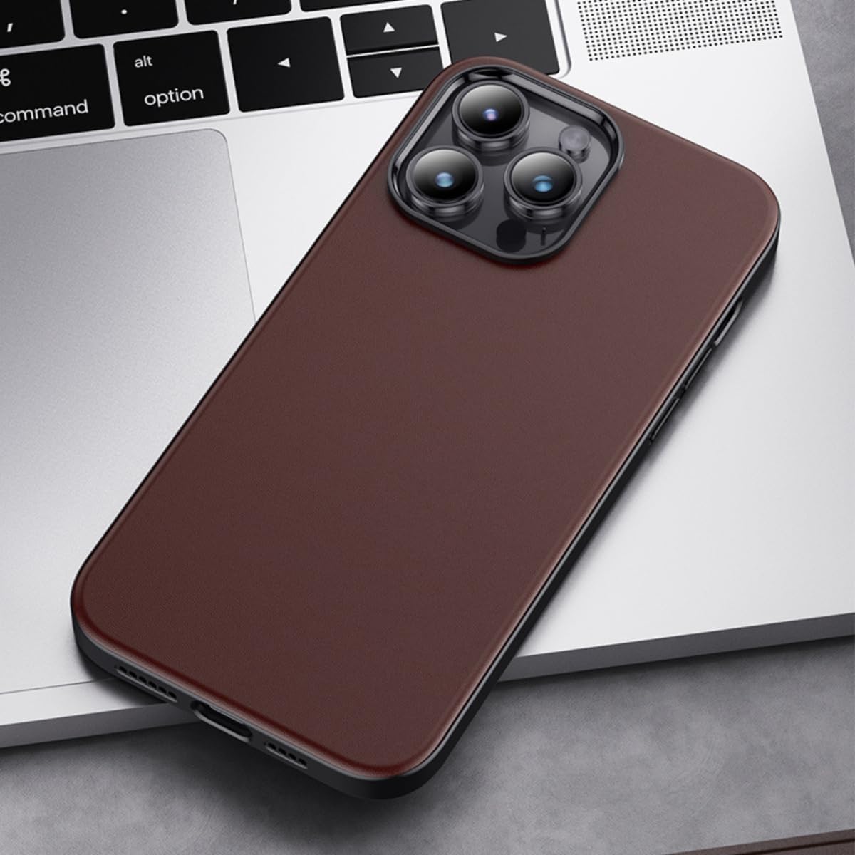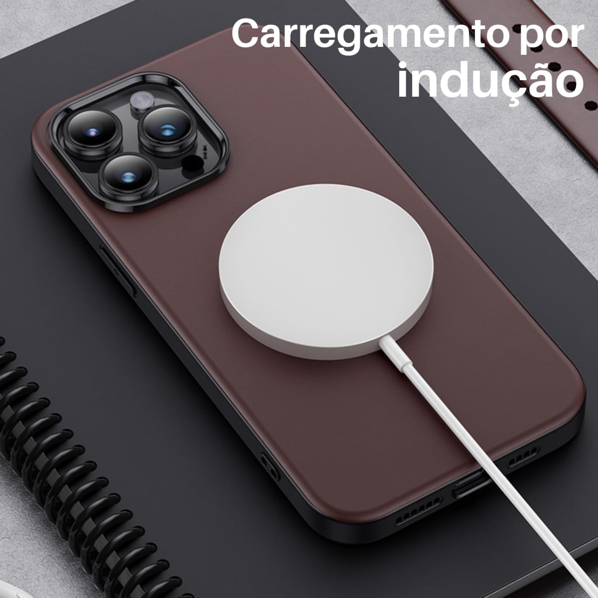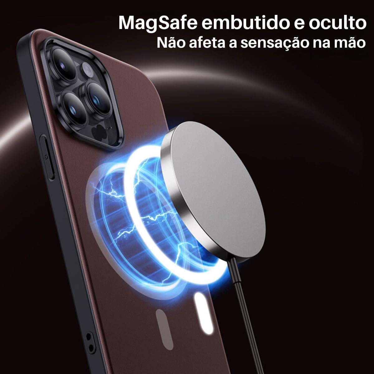 Capa Capinha Case Couro Premium Magnética Carregamento Sem Fio Anti Impacto Luxo Compatível com iPhone (Marrom Escuro, iPhone 16 Pro)
