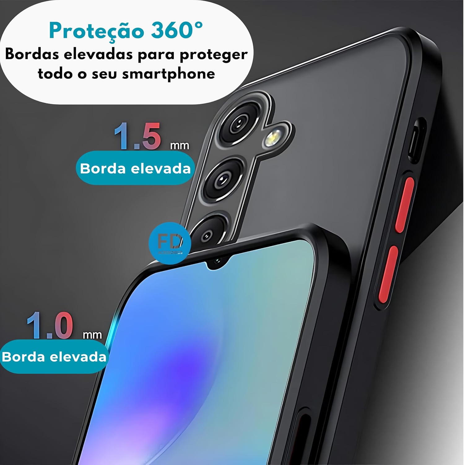 Proteção da Câmera: Design inteligente com proteção específica para a câmera, preservando a qualidade das fotos e vídeos.