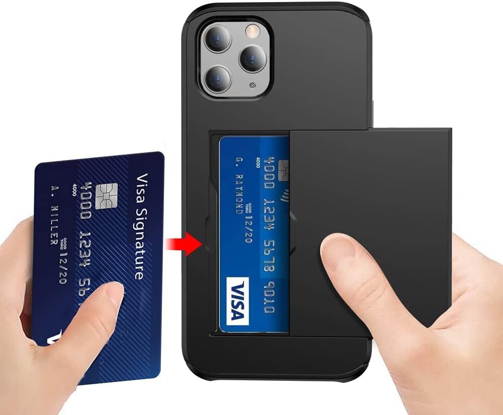 Capa Carteira com Porta Cartão Embutido para guardar Cartões de Crédito Para o iPhone 13 Pro Max (Preto)