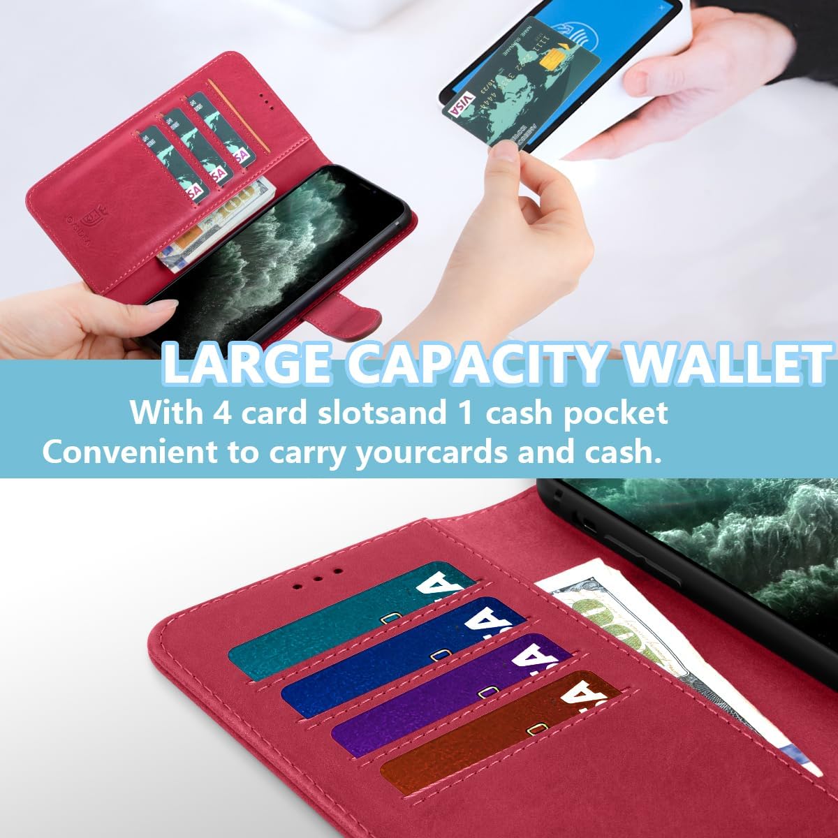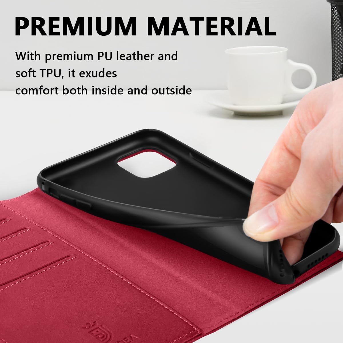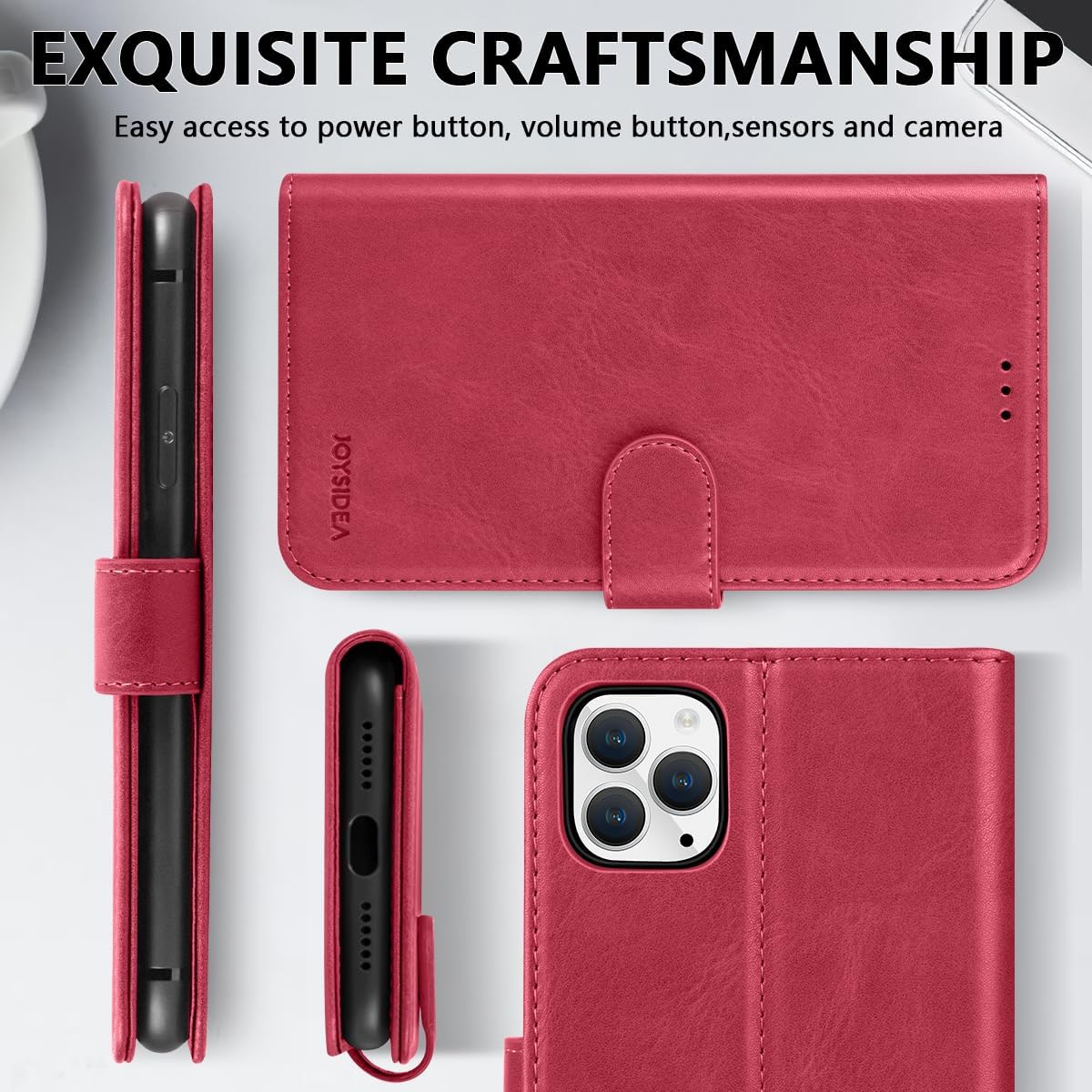 Capa carteira Milano da Joyside para iPhone 11 Pro Max, capa flip fina de couro sintético premium com suporte para cartão, suporte e capa de TPU à prova de choque para iPhone 11 Pro Max 6,5″, Vermelho