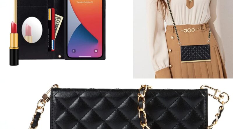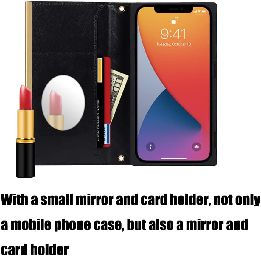 Capa carteira para iPhone 12 Pro Max, bolsa de couro com compartimentos para cartões, alça de ombro com suporte espelhado à prova de choque (iPhone 12 Pro Max, preta)
