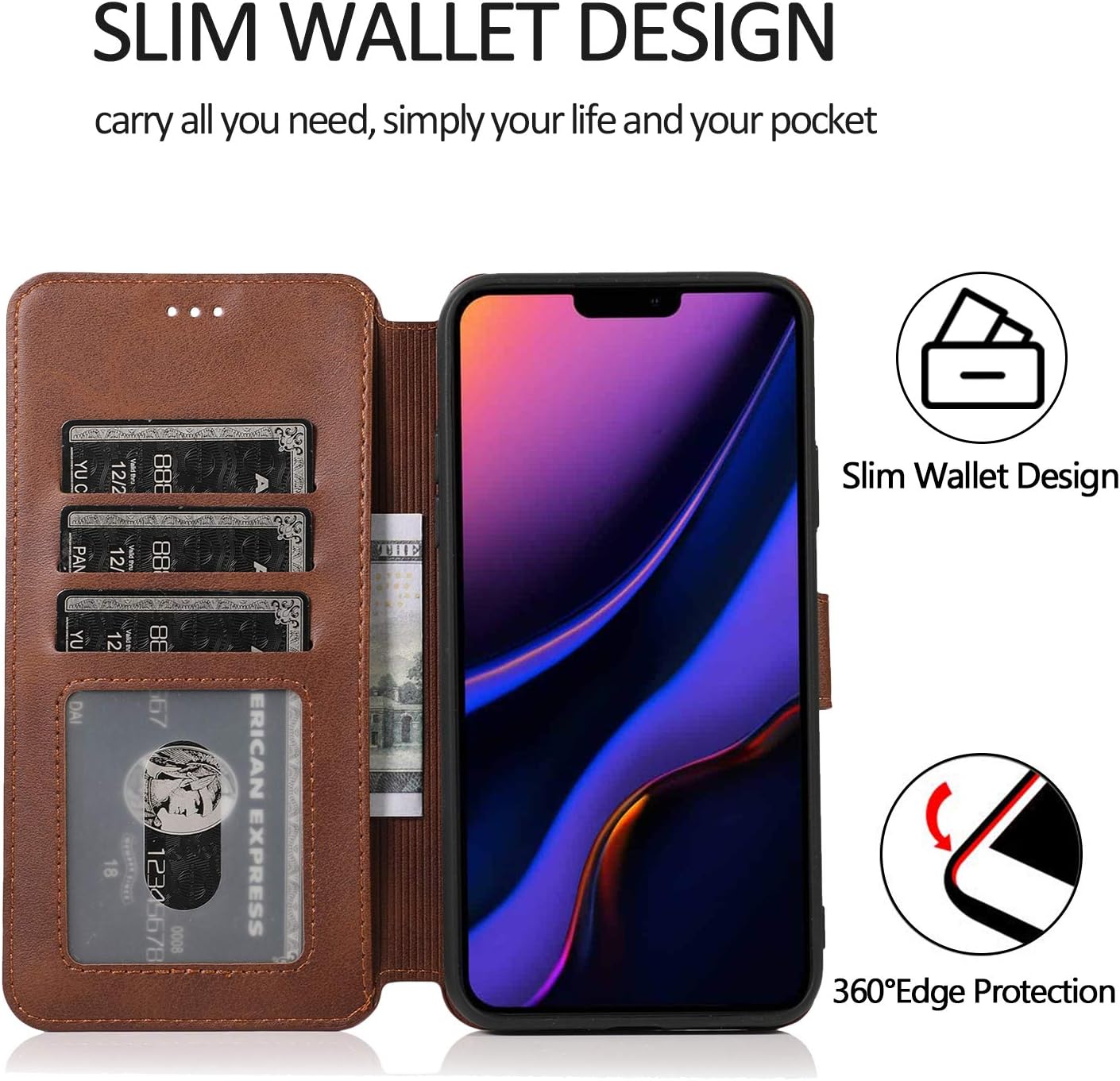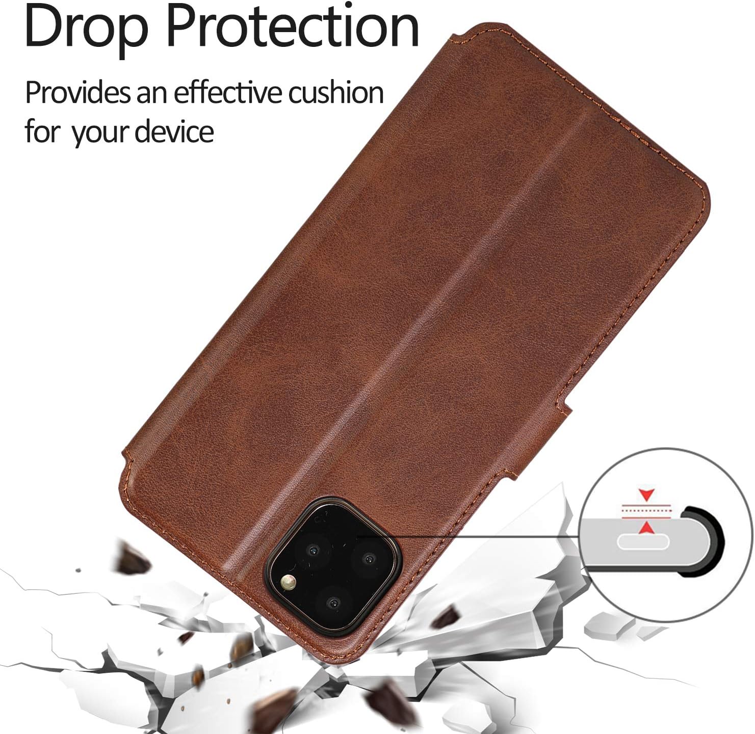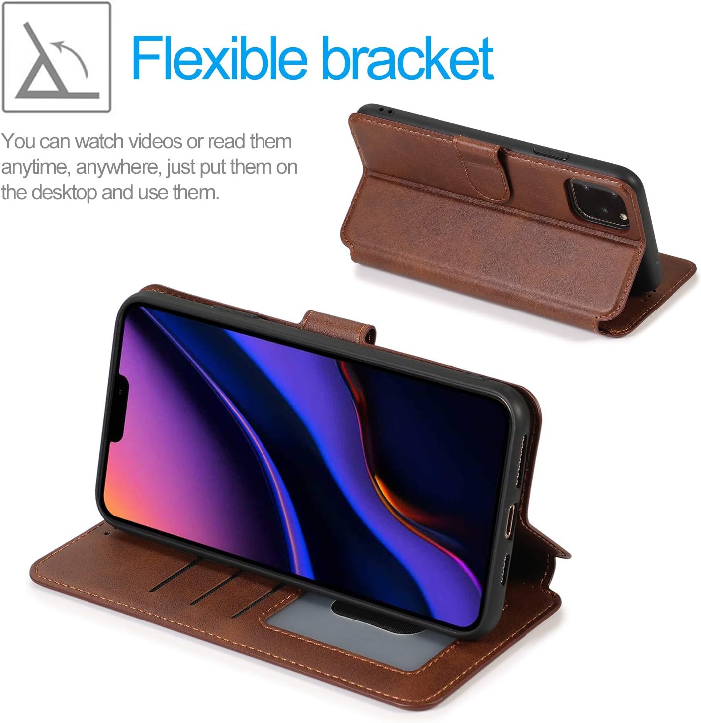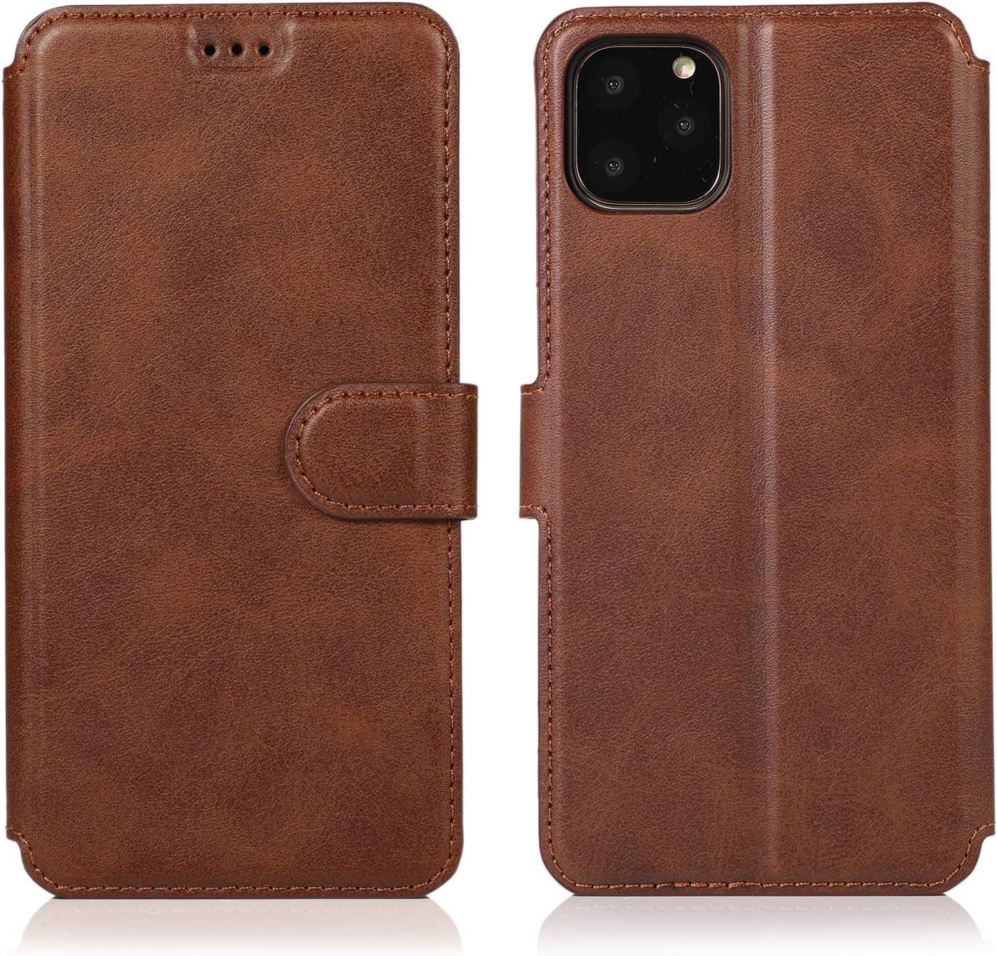 Capa carteira superlativa de couro simples com fecho magnético para iPhone 11 Series, iPhone 11 Pro, Marrom