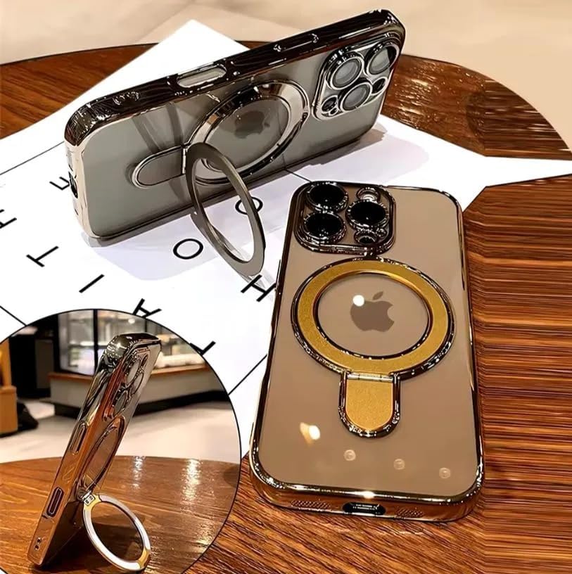 Capa com suporte magnético desert titanium para iphone 16 pro max com proteção nas lentes da câmera