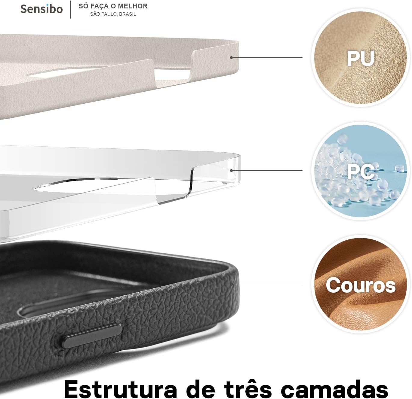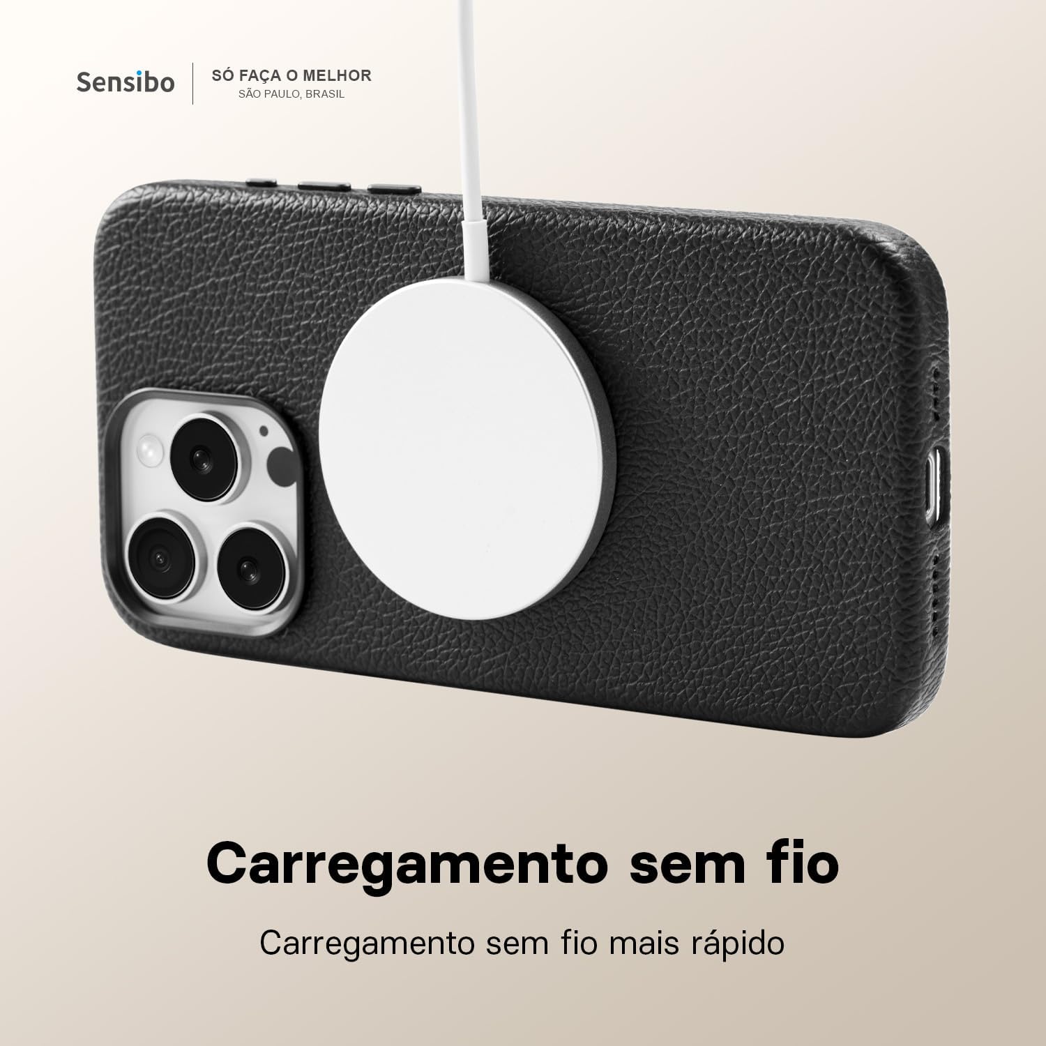 Capa de couro para iPhone, Compatível com MagSafe e carregamento sem fio, À prova d’água de choque e de sujeira, Botões de metal e moldura da câmera, Capa para iPhone (preto, iPhone 13 Pro Max)