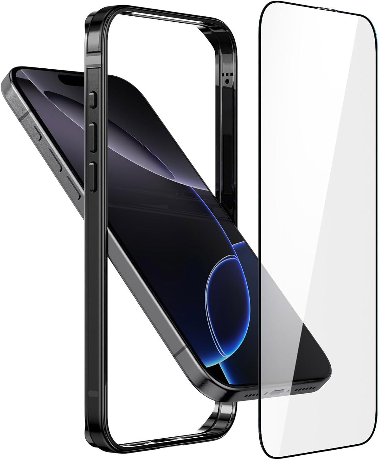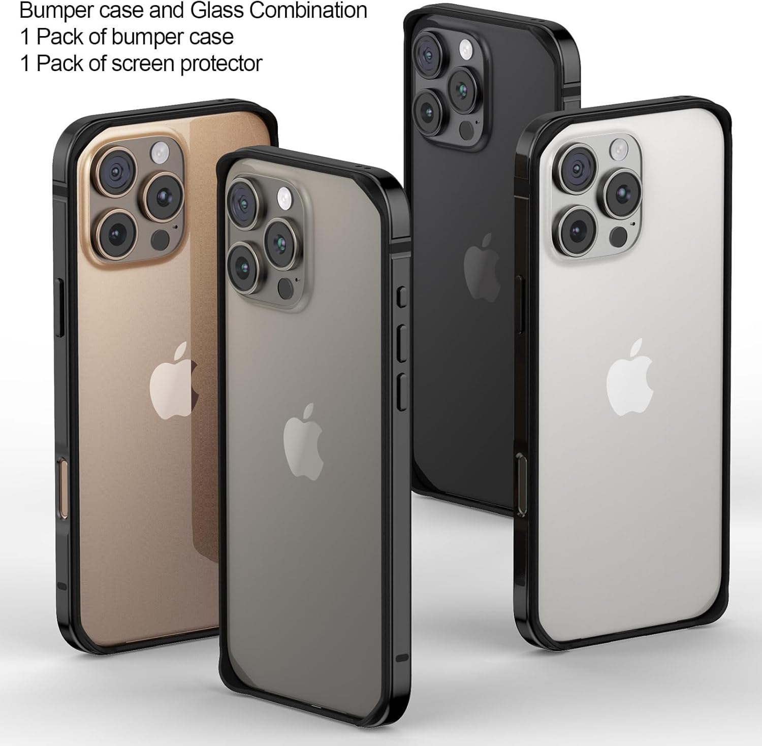 【Capa amortecedora com revestimento de metal e película protetora de vidro temperado】O pacote inclui uma capa leve para iPhone 16 Pro Max e uma película protetora de tela de vidro temperado. Fornece proteção de tela e borda de para-choque para iPhone com um passo.