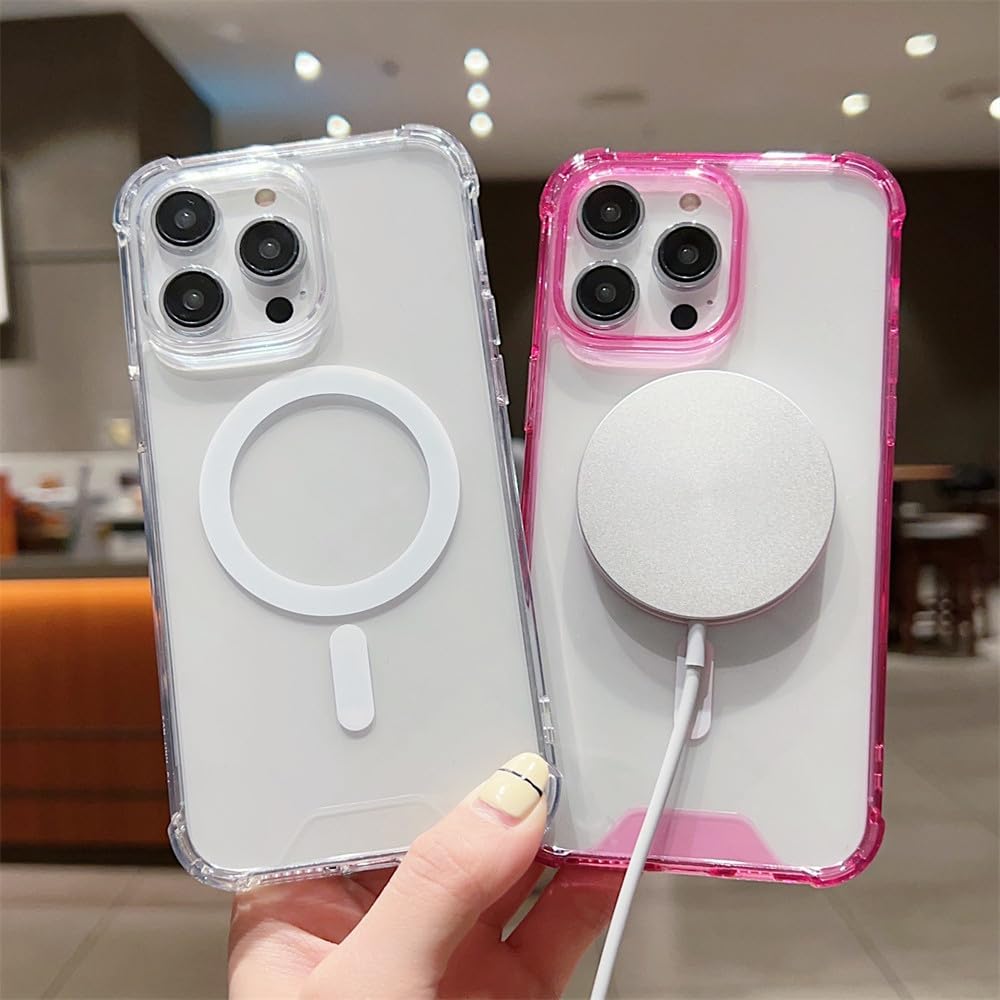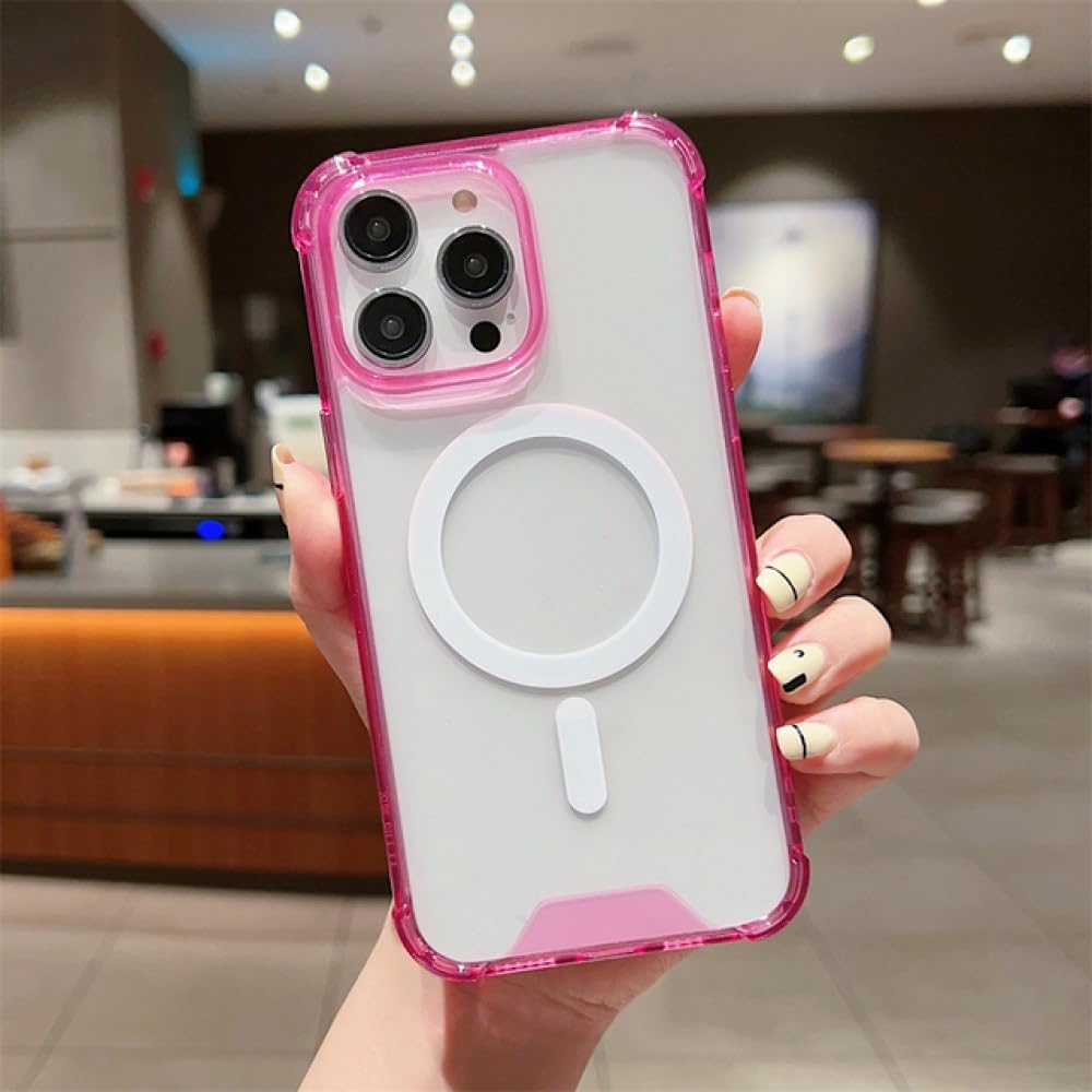 Capa de telefone magnética de carregamento sem fio de luxo para iPhone 14 11 12 13 Pro Max Plus Capa transparente à prova de choque, rosa, para iPhone 14ProMax