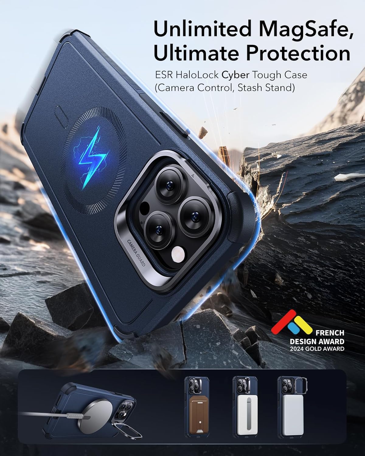 Capa ESR série Cyber para iPhone 13 Pro Max com suporte, proteção de nível militar contra quedas de 7 metros, capa magnética resistente, compatível com acessórios MagSafe, azul