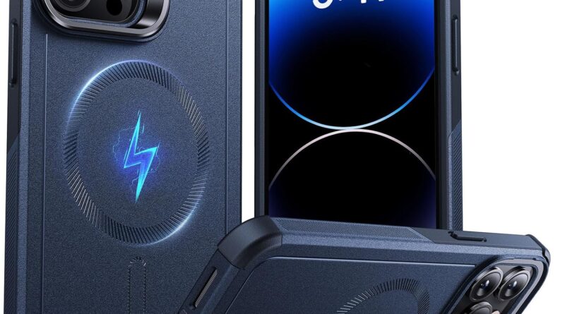 Capa ESR série Cyber para iPhone 13 Pro Max com suporte, proteção de nível militar contra quedas de 7 metros, capa magnética resistente, compatível com acessórios MagSafe, azul