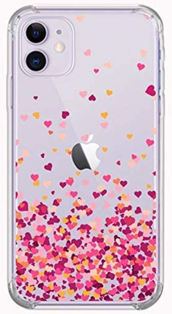 Capa iPhone 11 6.1 Polegadas Chuva Corações Rosa Heart Capinha Bordas Reforçadas