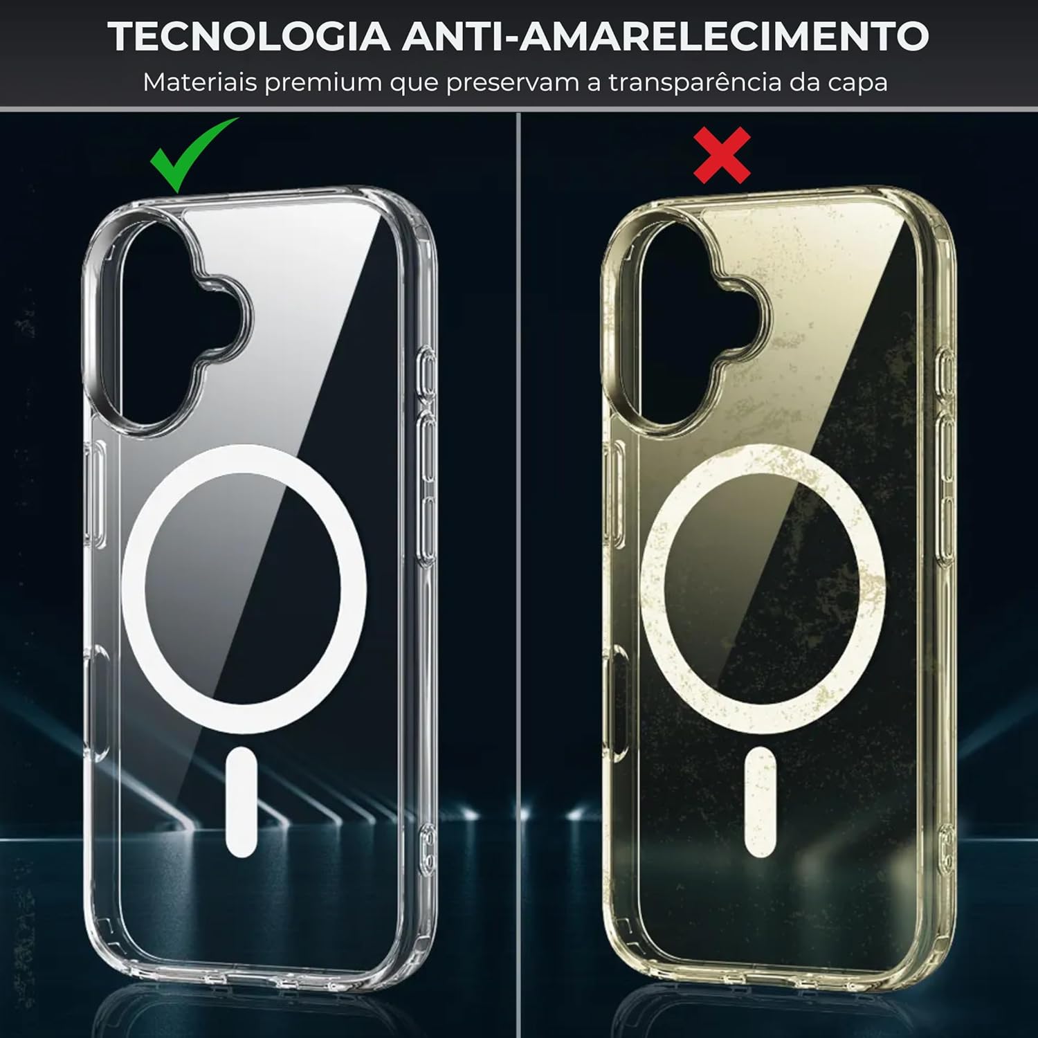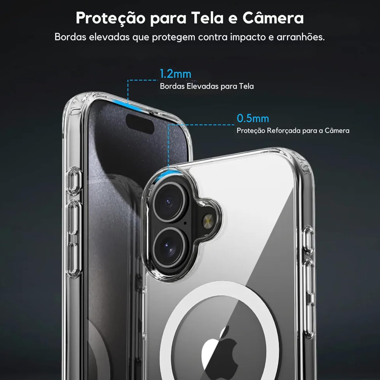 Capa Transparente Magnética Mag-Safe Premium para iPhone 16 – Anti Amarelamento, Proteção Completa
