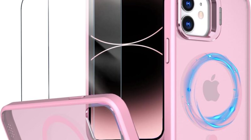 Capa magnética para iPhone 12 e 12 Pro Capinha – Inclui 2 protetores de tela [Suporte para celular] [Compatível com carregamento sem fio] Case Skin-touch para iPhone 12 e 12 Pro – Rosa
