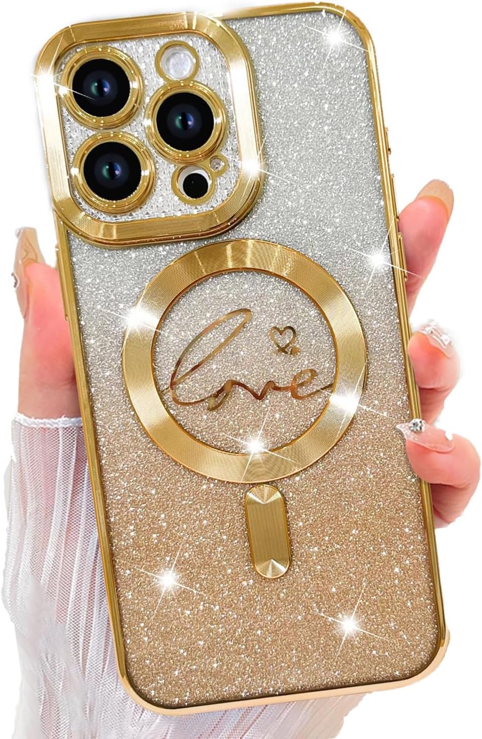 Capa magnética para iPhone 16 Pro Max, [compatível com MagSafe] [proteção total da câmera] Capas de telefone finas luxuosas com brilho gradiente transparente para iPhone 16 Pro Max, à prova de choque