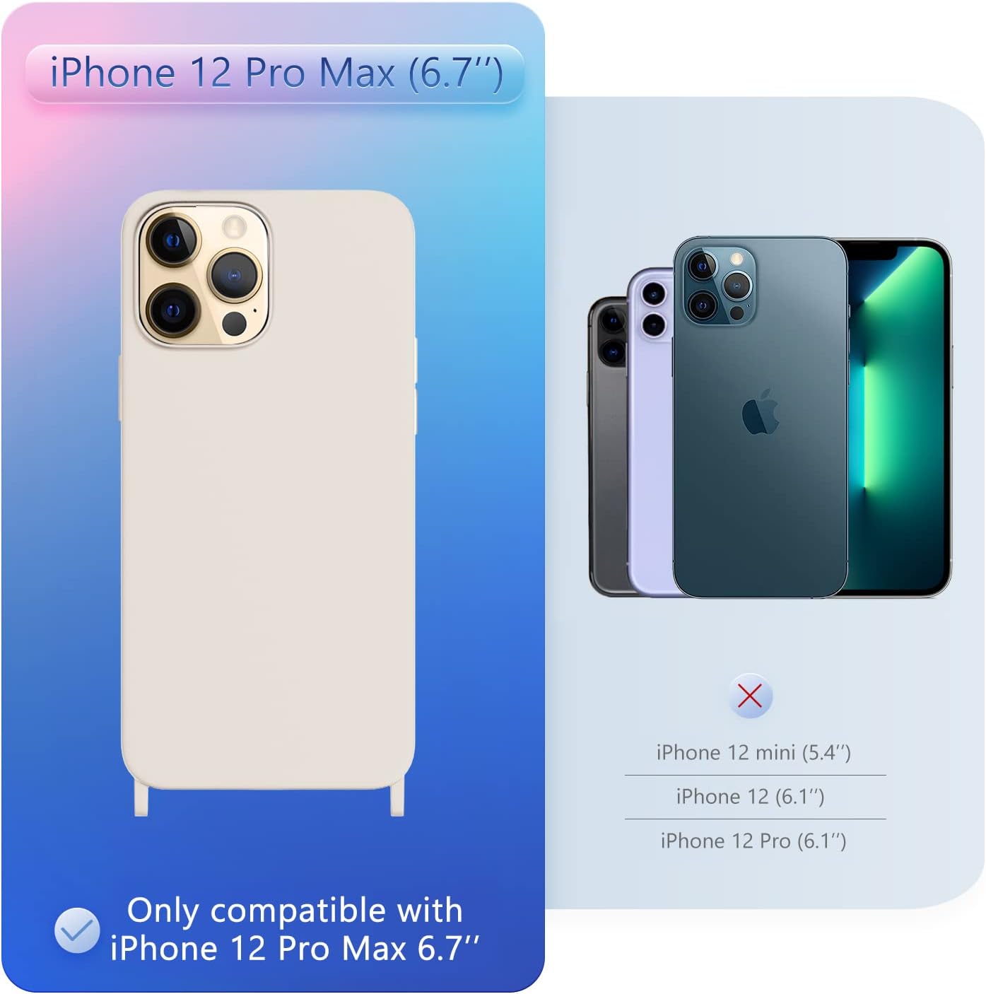 Material de silicone líquido premium: a capa transversal para iPhone 12 Pro Max com alça de cordão é feita de silicone líquido, que é macio ao toque, à prova de choque, resistente à sujeira e tem uma boa aderência, tornando seu telefone fácil de segurar e nunca escorregar da sua mão.