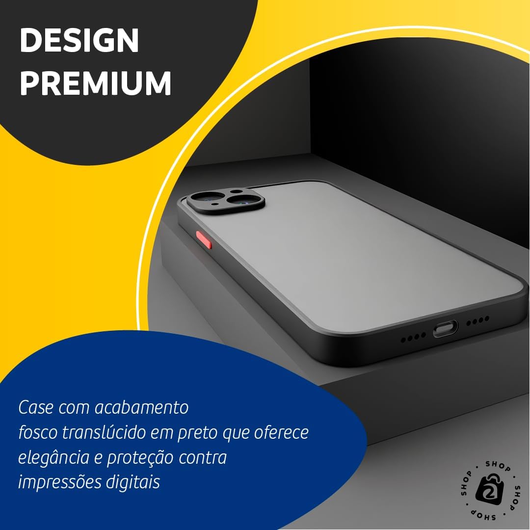 DESIGN PREMIUM: Case com acabamento fosco translúcido em preto que oferece elegância e proteção contra impressões digitais
