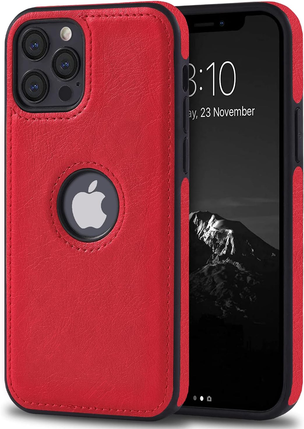 Capa protetora de couro compatível com iPhone 12 Pro Max, capa híbrida de TPU para iPhone 12 Pro Max 6,7 polegadas (vermelha) (vermelho, iPhone 12 Pro Max)