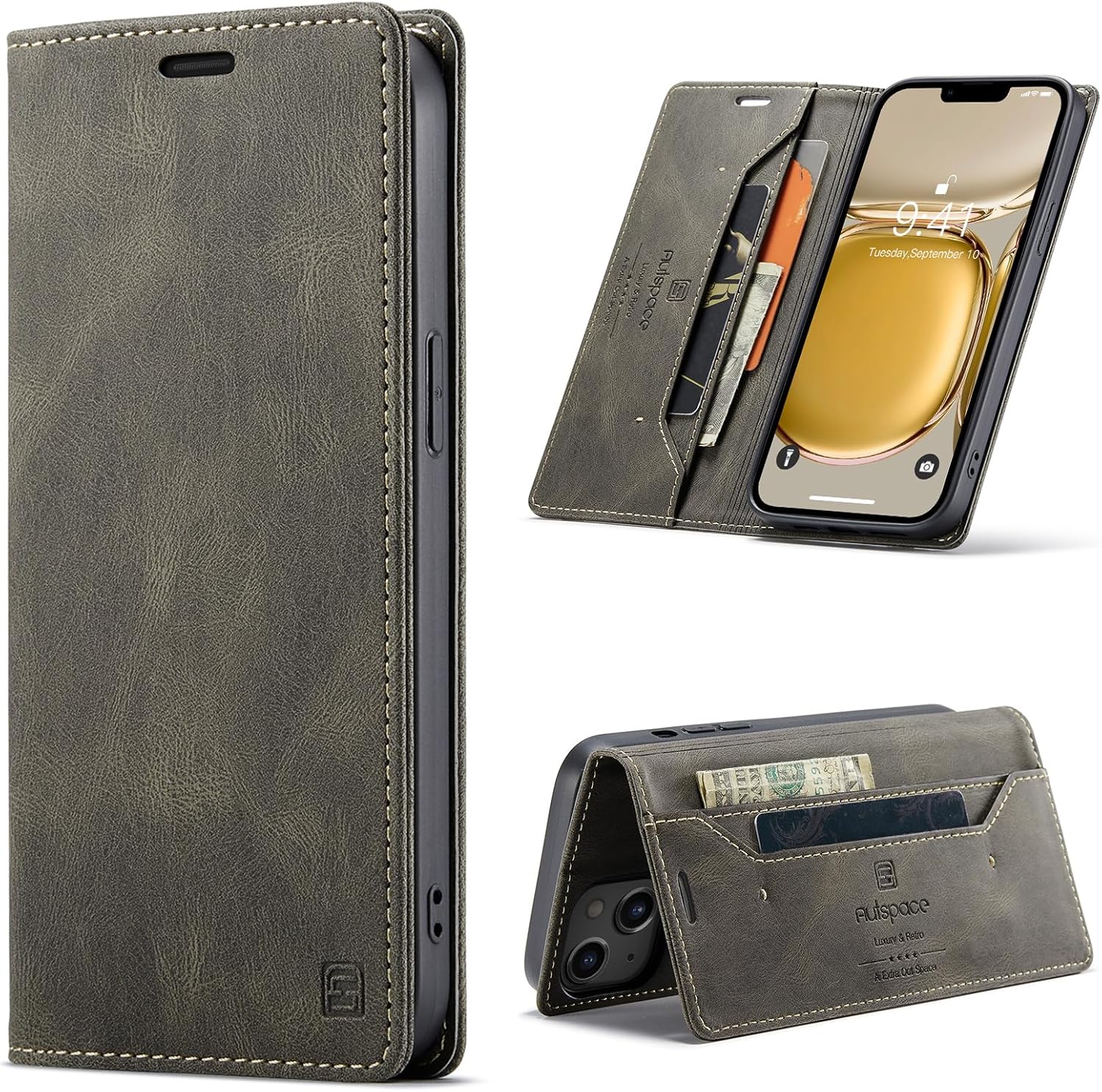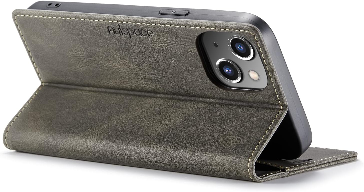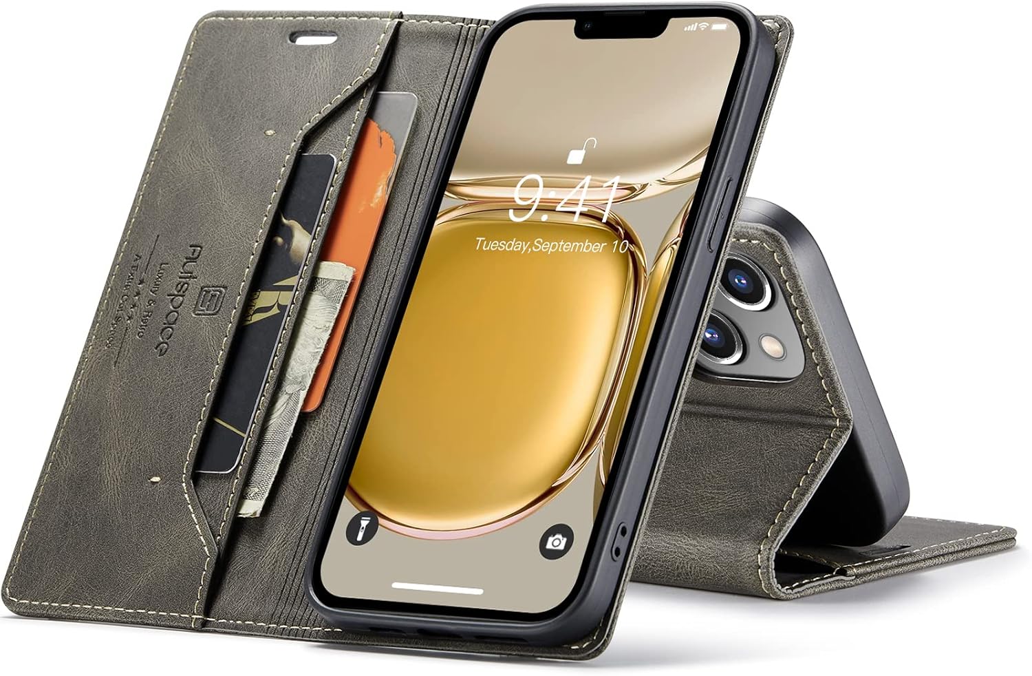 Capinha de Couro para iPhone 13, Capa Carteira com Ímã, Suporte Dobrável (Marrom)